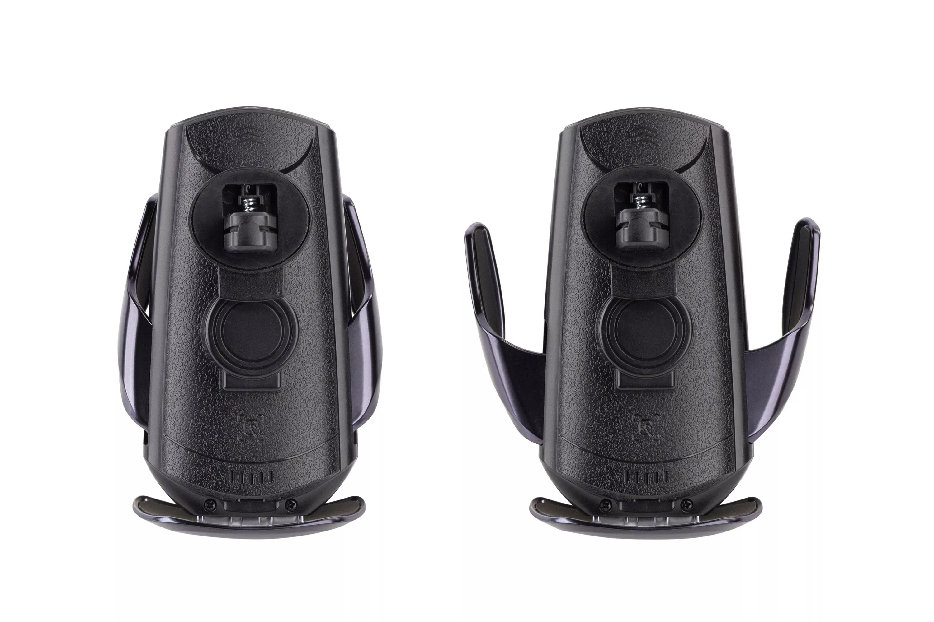 - поднесите смартфон к зажимам устройства на расстояние 10-15 см., сработает инфракрасный датчик и зажимы раздвинутся в стороны;