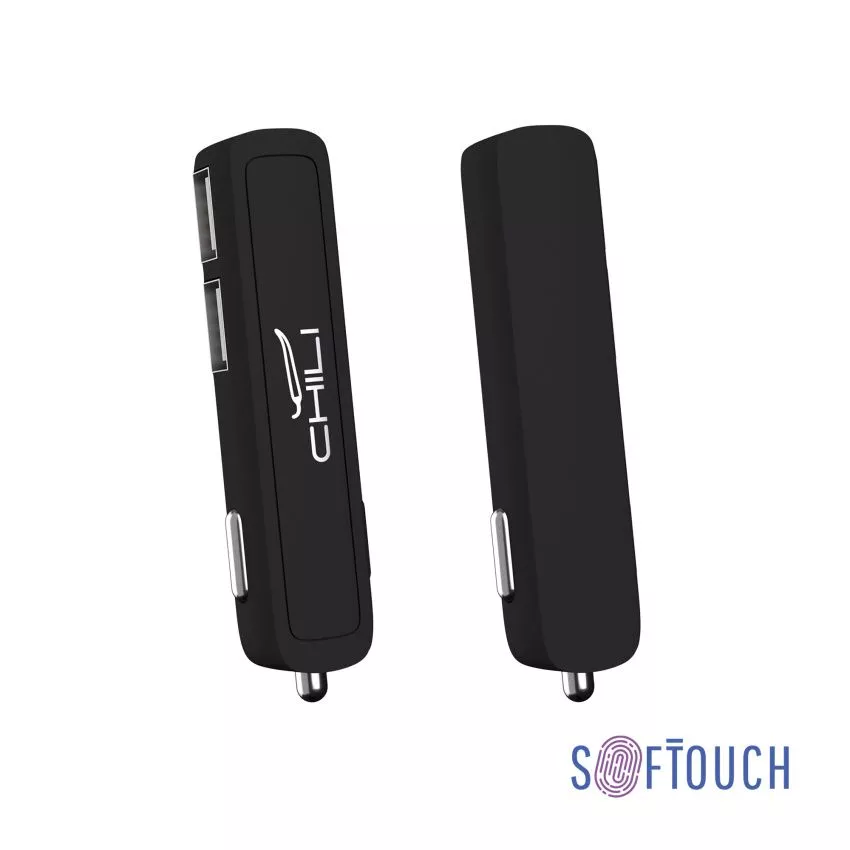 Автомобильное зарядное устройство "Slam" на 2 USB-порта по 2,1А каждый. На матовом корпусе с прорезиненным (софттач) напылением будет эффектно смотреться "зеркальная" гравировка благодаря наличию хромированной подложки. Силы тока в 2,1А достаточно для зарядки большинства портативных цифровых устройств.