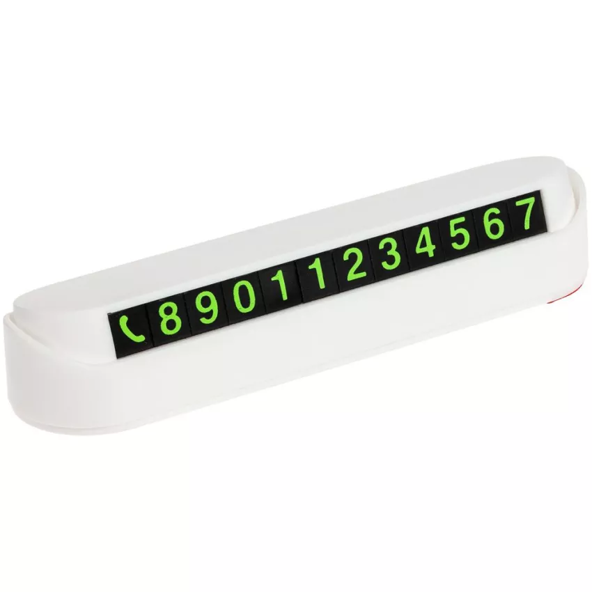 В наборе подставка с клейким основанием и комплект магнитных символов — при изменении номера телефона данные на визитке легко скорректировать.