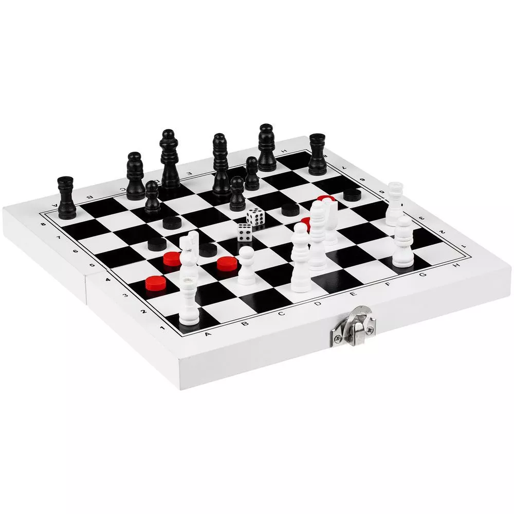 На внутренней стороне доски расположено поле для игры в нарды, на внешней — для шахмат и шашек. Компактная складная доска позволяет хранить все фигуры внутри, что делает данный набор идеальным компаньоном как для домашних вечеров, так и для путешествий.Упаковано в индивидуальную коробку.