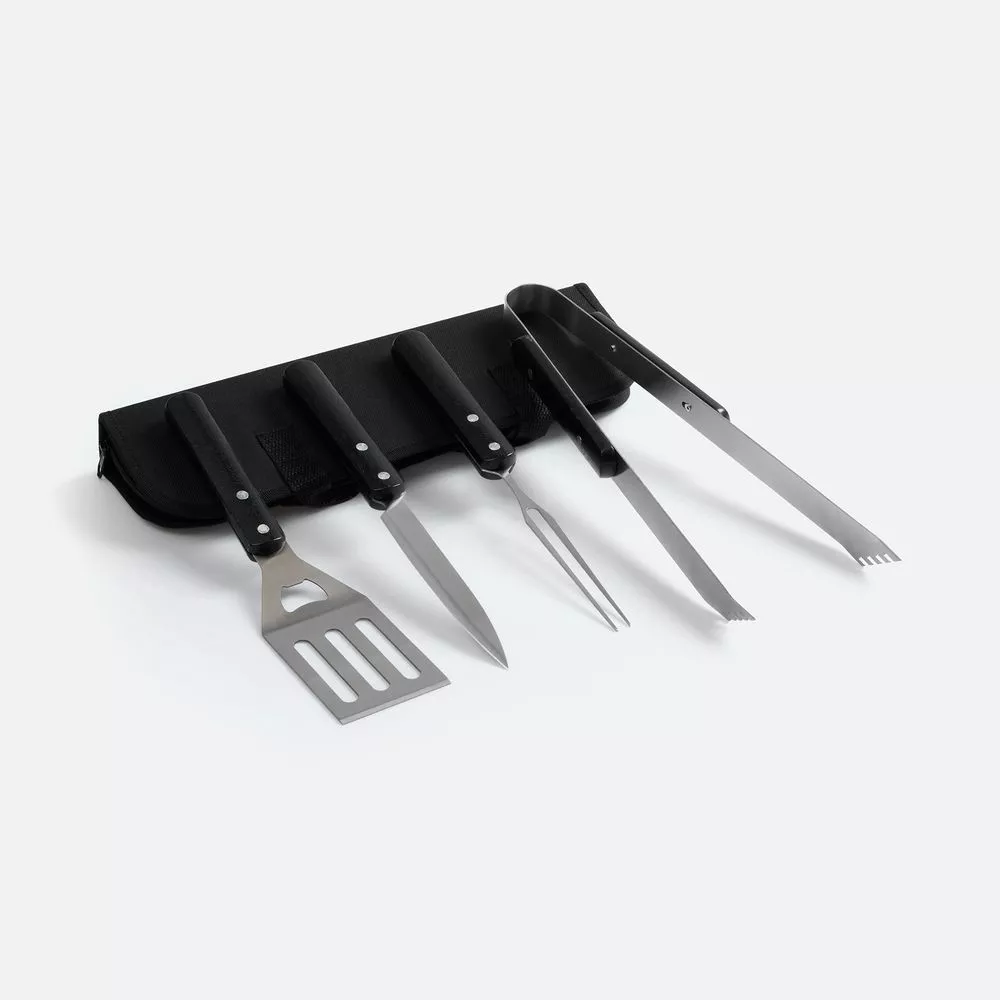В набор входят: щипцы, вилка, лопатка и нож.
