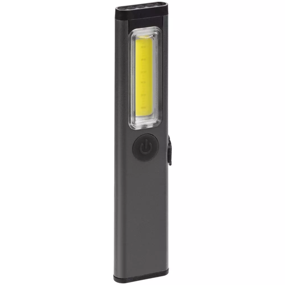 Плавная регулировка яркости осуществляется удержанием центральной кнопки при включенном устройстве — это позволяет точно адаптировать освещение под рабочие условия. Магнит в основании фонарика дает возможность зафиксировать фонарик на металлической поверхности и освободить руки для выполнения задач.