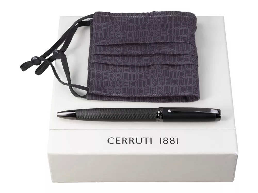 - шариковая авторучка в матово-чёрном корпусе с отделкой из оружейного металла с поворотным механизмом,
