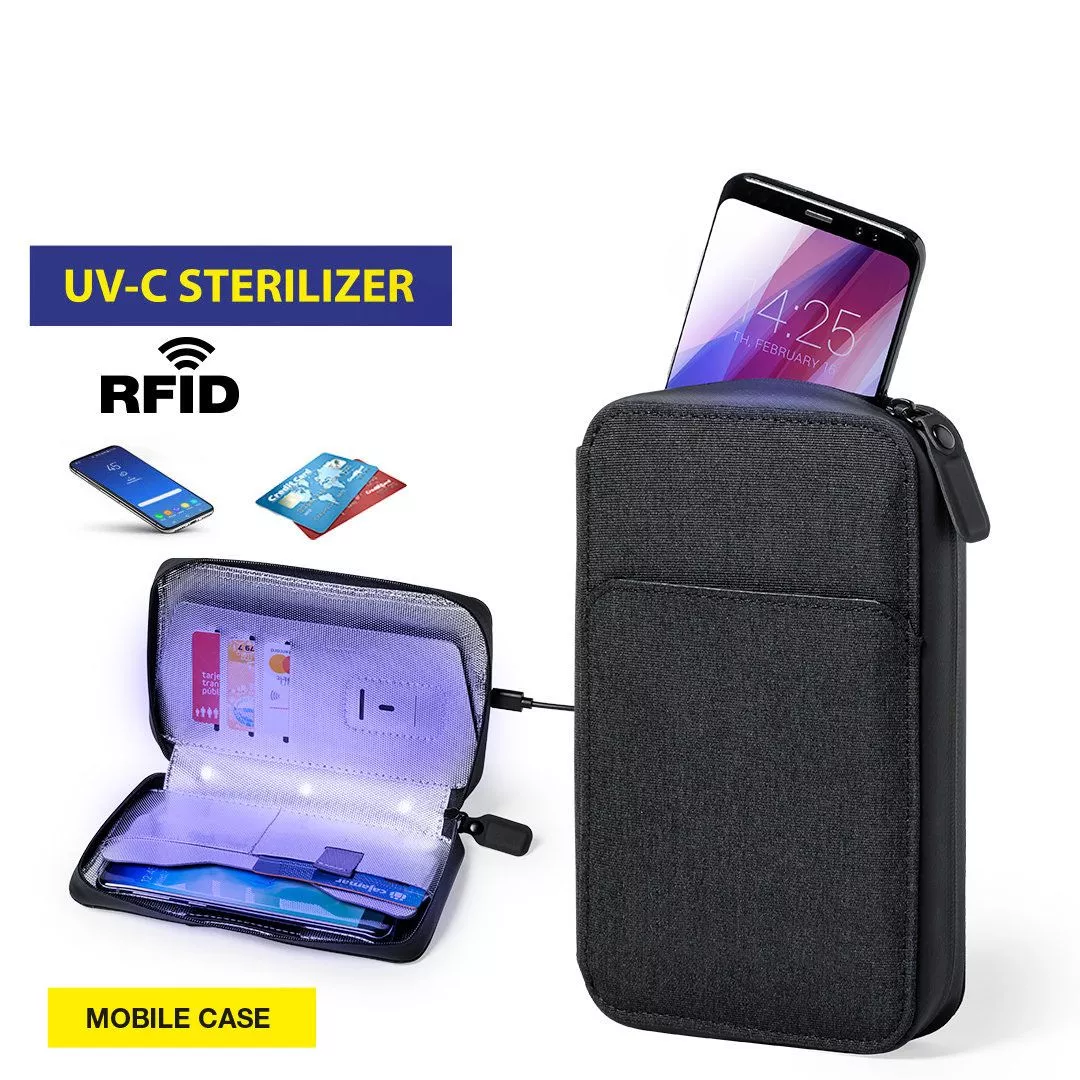 Органайзер с функцией УФ(UV)-стерилизации позволяет эффективно проводить обработку поверхности смартфона, банковских карт, денежных купюр и всевозможных аксессуаров, размещённых во внутреннем отделении.