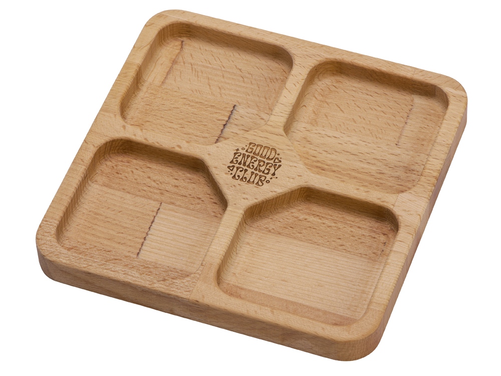 Бук не царапает столешницу, в том числе и стеклянную, мягко приземляясь на стол, и красиво обрамляет поданные закуски. Менажница уже обработана минеральным пищевым маслом, которое придает изделию свежий вид.