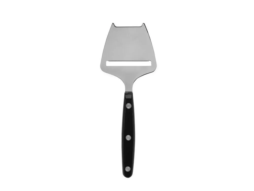 - Узкий нож — для мягких и средней мягкости сортов: воздушные карманы, образованные отверстиями, не дадут сыру прилипнуть к полотну и помогут ровно нарезать тонкие ломтики.