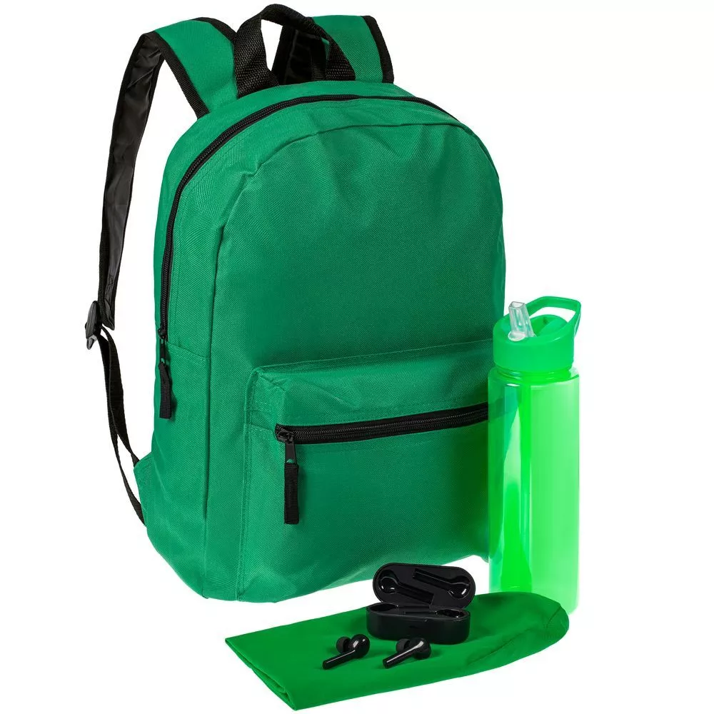 В рюкзаке достаточно места для вкусных снэков, пледа, теплой одежды и других предметов первой необходимости. А чтобы путь до места назначения был приятным, в Basepack есть базовые аксессуары: спортивная бутылка для воды с носиком-поилкой, стильные беспроводные наушники для прослушивания любимой музыки или разговоров по телефону, а также легкая трикотажная шапка, которая не позволит замерзнуть в дороге.