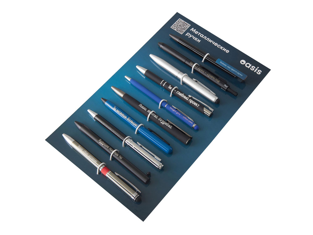 Промо-набор — идеальный инструмент для презентаций: клиенты могут подержать ручки в руках, опробовать их на письме и наглядно увидеть различия между видами нанесения. При этом все самые важные модели собраны в одном легком и компактном наборе.