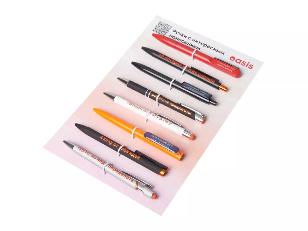 Промо-набор — идеальный инструмент для презентаций: клиенты могут подержать ручки в руках, опробовать их на письме и наглядно увидеть различия между видами нанесения. При этом все самые важные модели собраны в одном легком и компактном наборе.