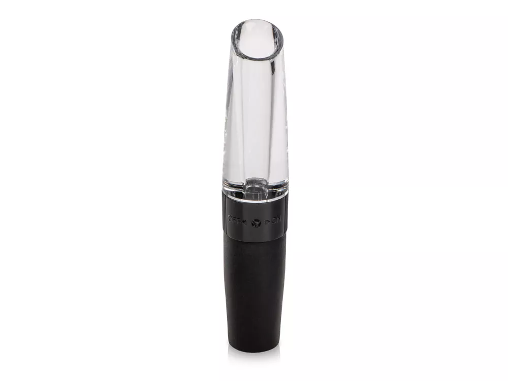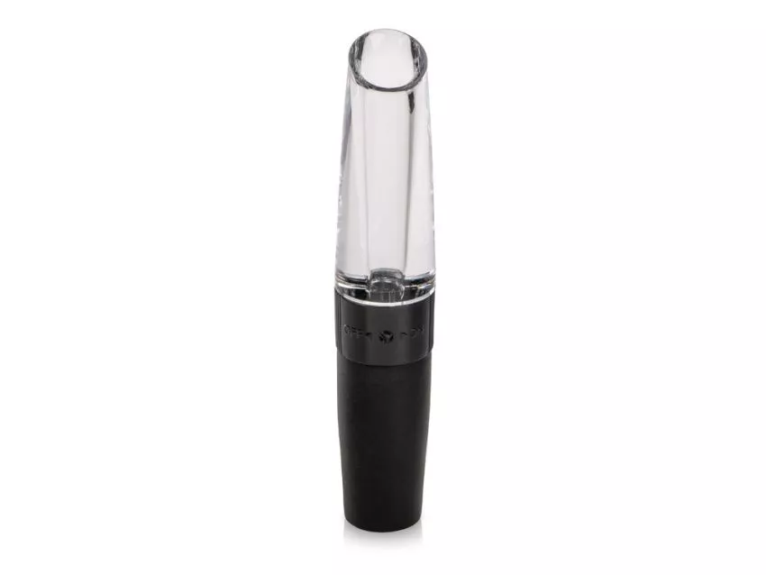 Аэратор имеет два режима, настроить которые вы можете поворотом кольца, перехватывающего корпус посередине. В положении OFF отверстие сбоку закрыто, и Valencia выступает в роли воронки для разлива. В положении ON отверстие открывается, чтобы открыть доступ воздуха сбоку — напиток насыщается кислородом.