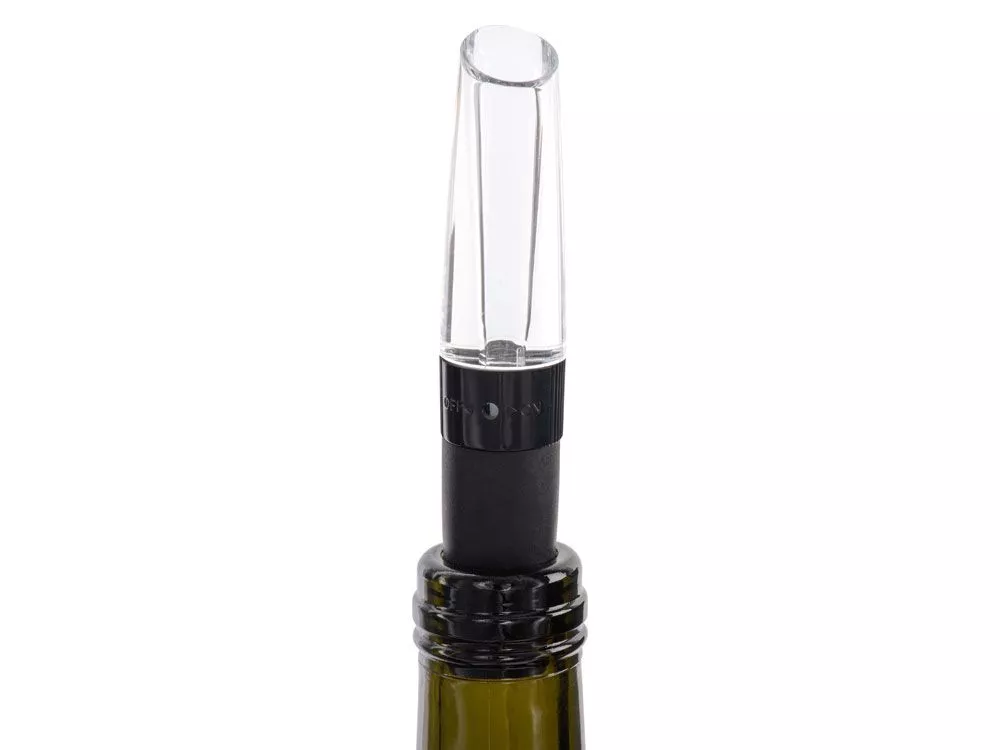 Силиконовая вставка отвечает за плотное прилегание к горлышку бутылки, а прозрачная акриловая вставка позволяет насладиться видом разливающегося вина.
