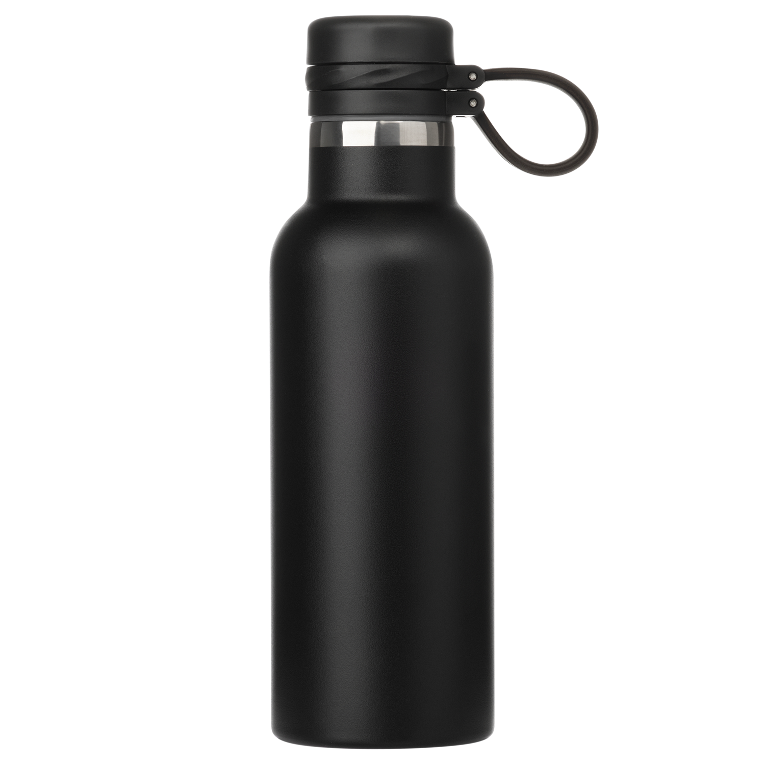 Вакуумная герметичная конструкция выполнена из двухслойной высоколегированной стали 304 марки, что делает конструкцию более прочной и устойчивой к мелким сколам и царапинам. Крышка из высококачественного пластика, оснащена удобной силиконовой петелькой для переноски. Бутылку можно переворачивать и класть в сумку.