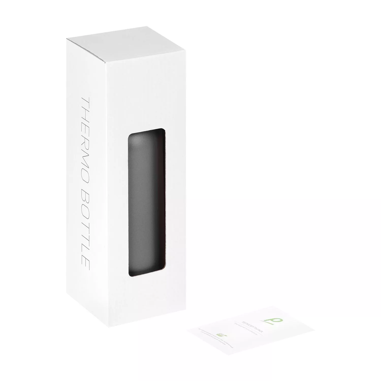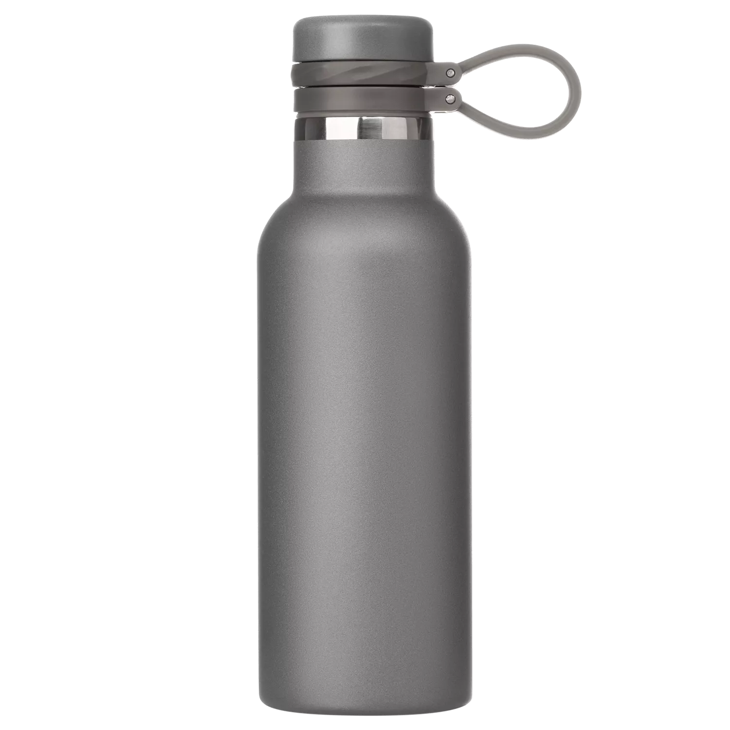 Вакуумная герметичная конструкция выполнена из двухслойной высоколегированной стали 304 марки, что делает конструкцию более прочной и устойчивой к мелким сколам и царапинам. Крышка из высококачественного пластика, оснащена удобной силиконовой петелькой для переноски. Бутылку можно переворачивать и класть в сумку.