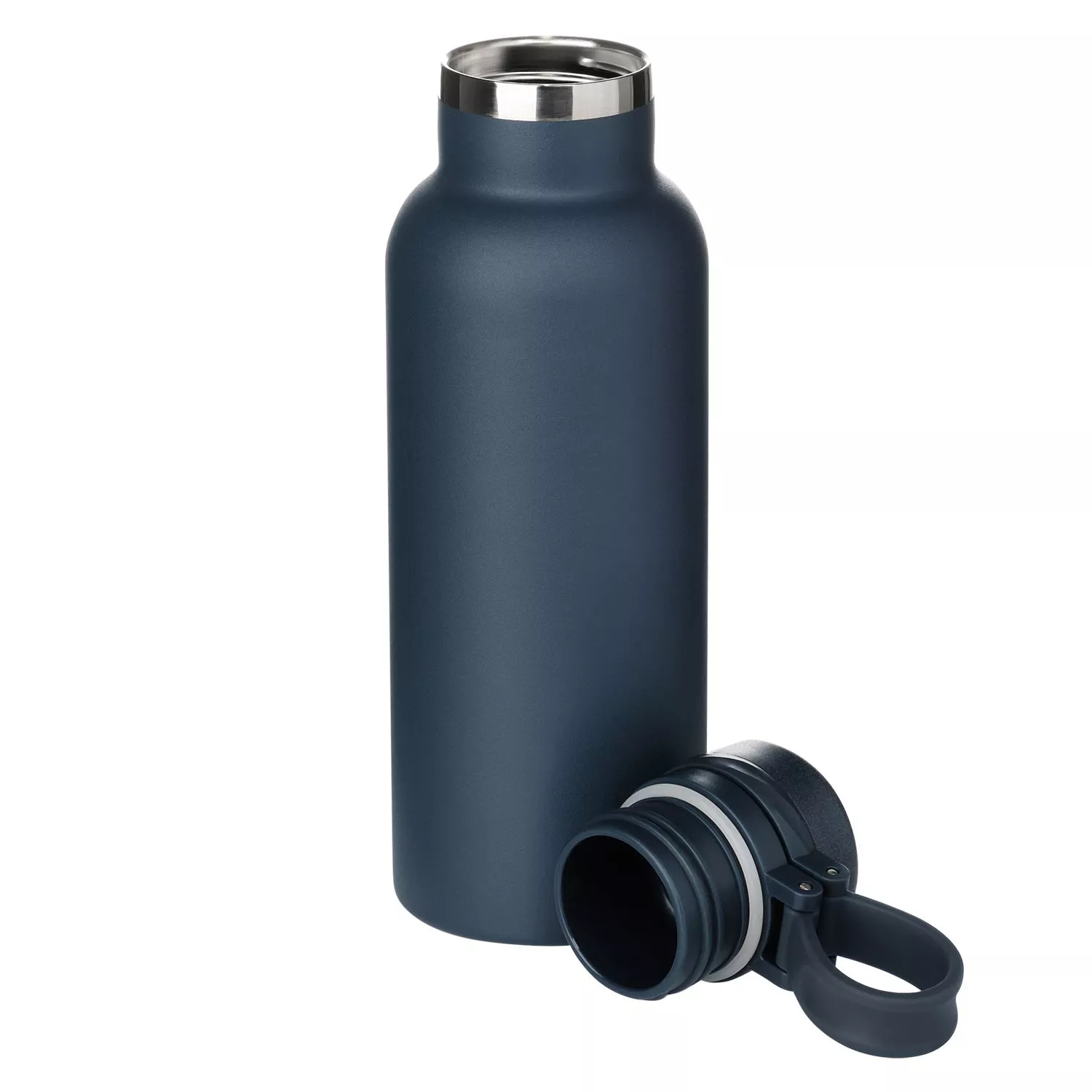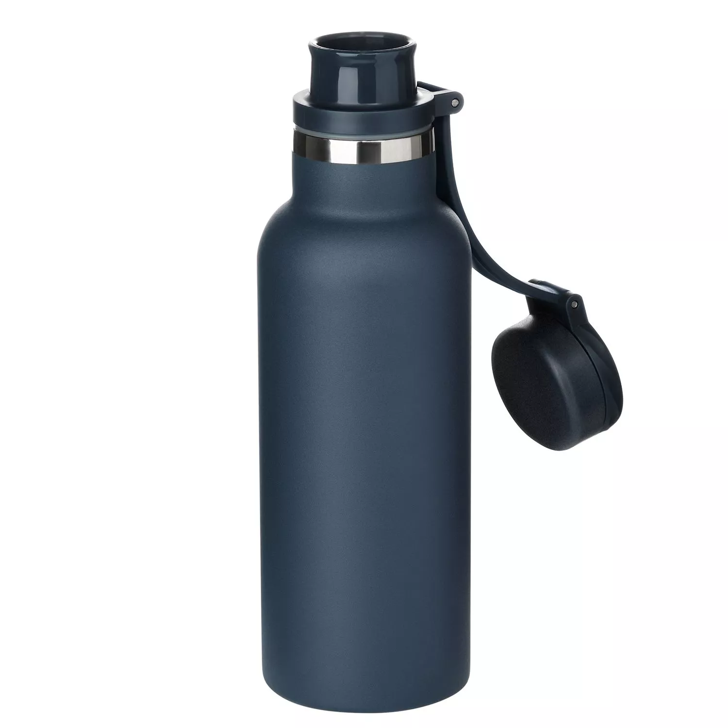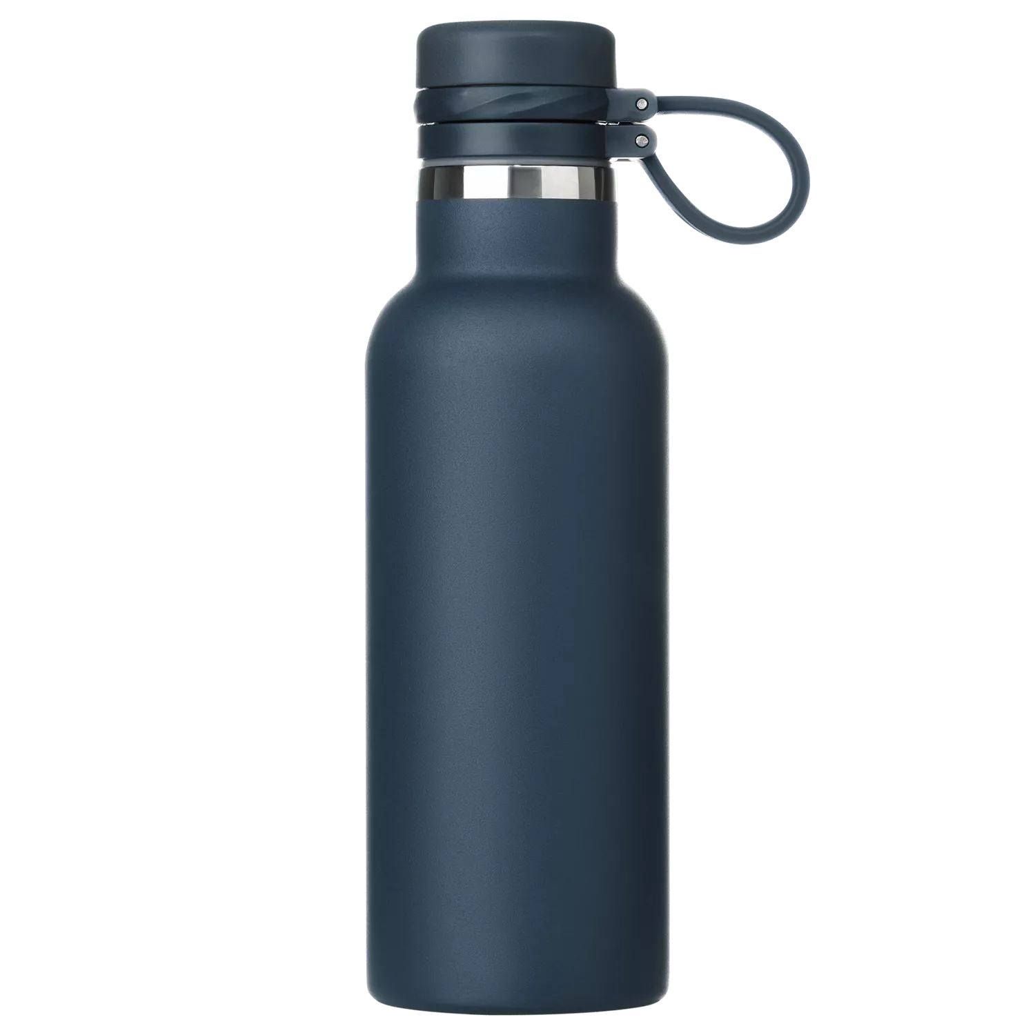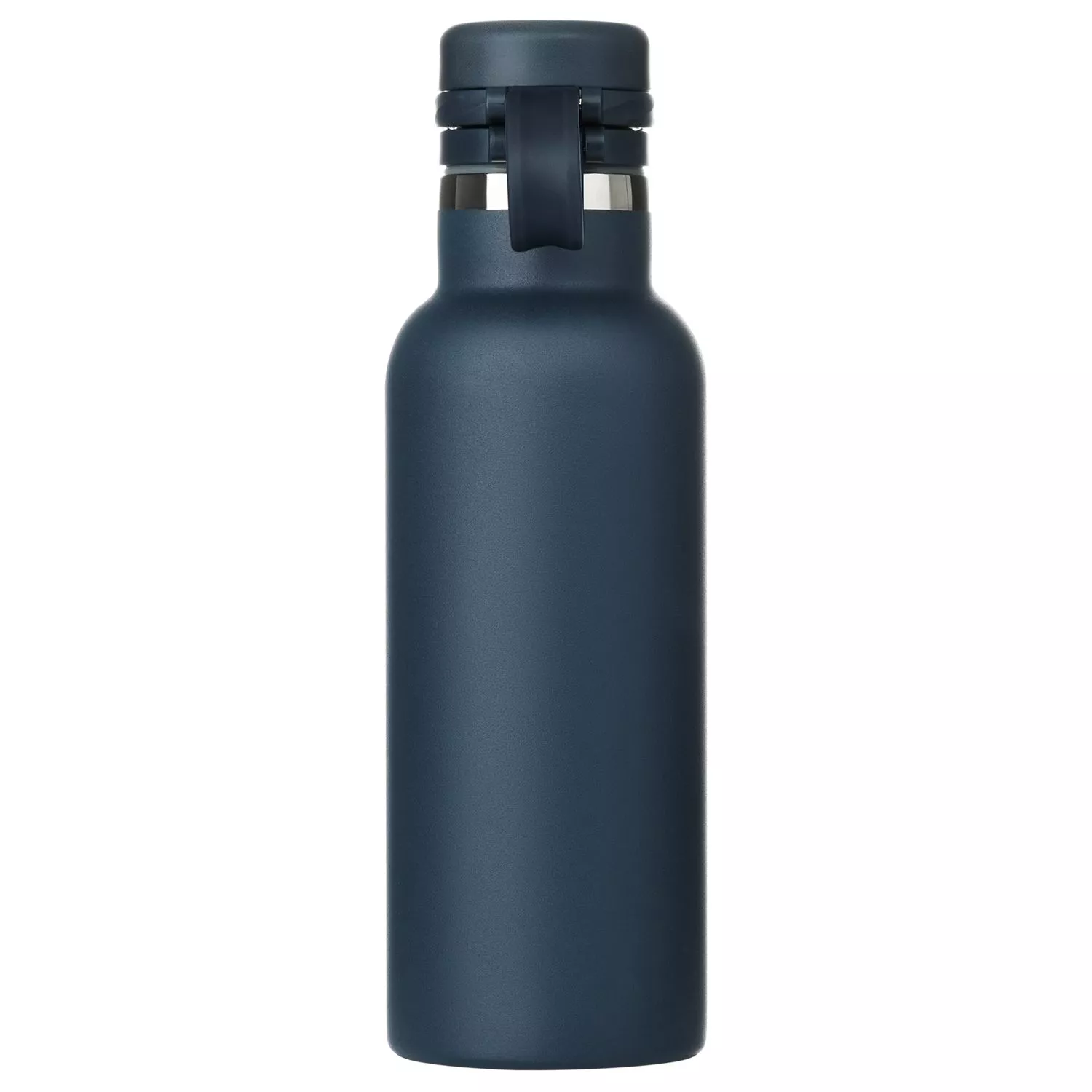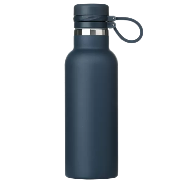 Вакуумная герметичная конструкция выполнена из двухслойной высоколегированной стали 304 марки, что делает конструкцию более прочной и устойчивой к мелким сколам и царапинам. Крышка из высококачественного пластика, оснащена удобной силиконовой петелькой для переноски. Бутылку можно переворачивать и класть в сумку.
