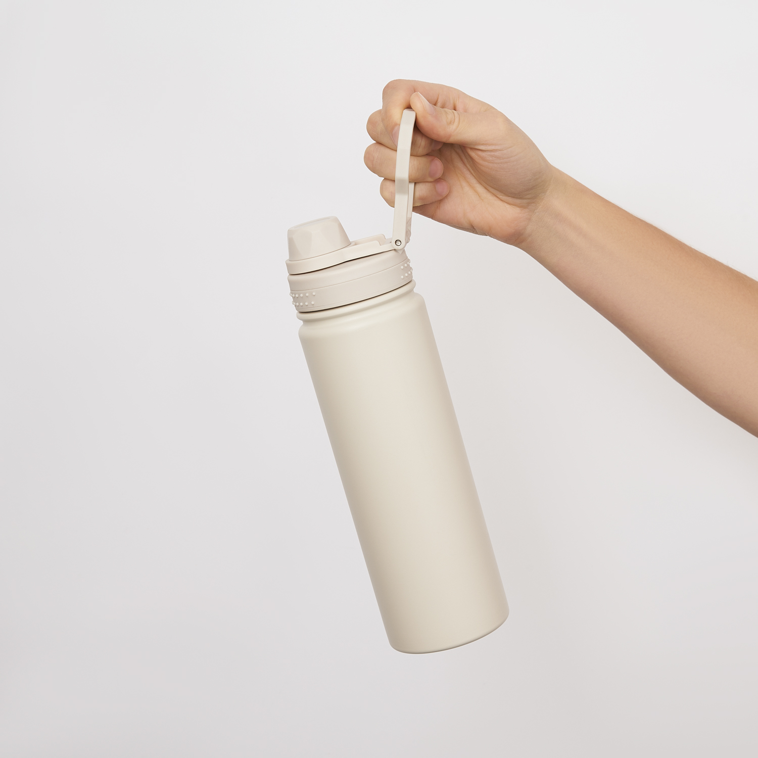 Бутылка оснащена съемной трубочкой. Удобная ручка на крышке облегчает переноску и позволяет прикрепить термобутылку к рюкзаку или сумке.