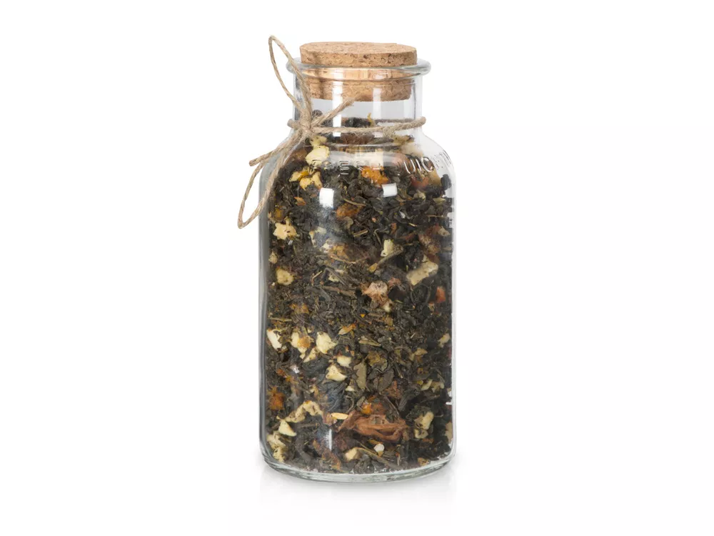Состав: чай зелёный с ананасом и соком ананаса (чай зелёный байховый крупнолистовой, кусочки ананаса, сок ананаса), яблоко сушеное, облепиха сублимированная, ароматизатор натуральный Яблоко.