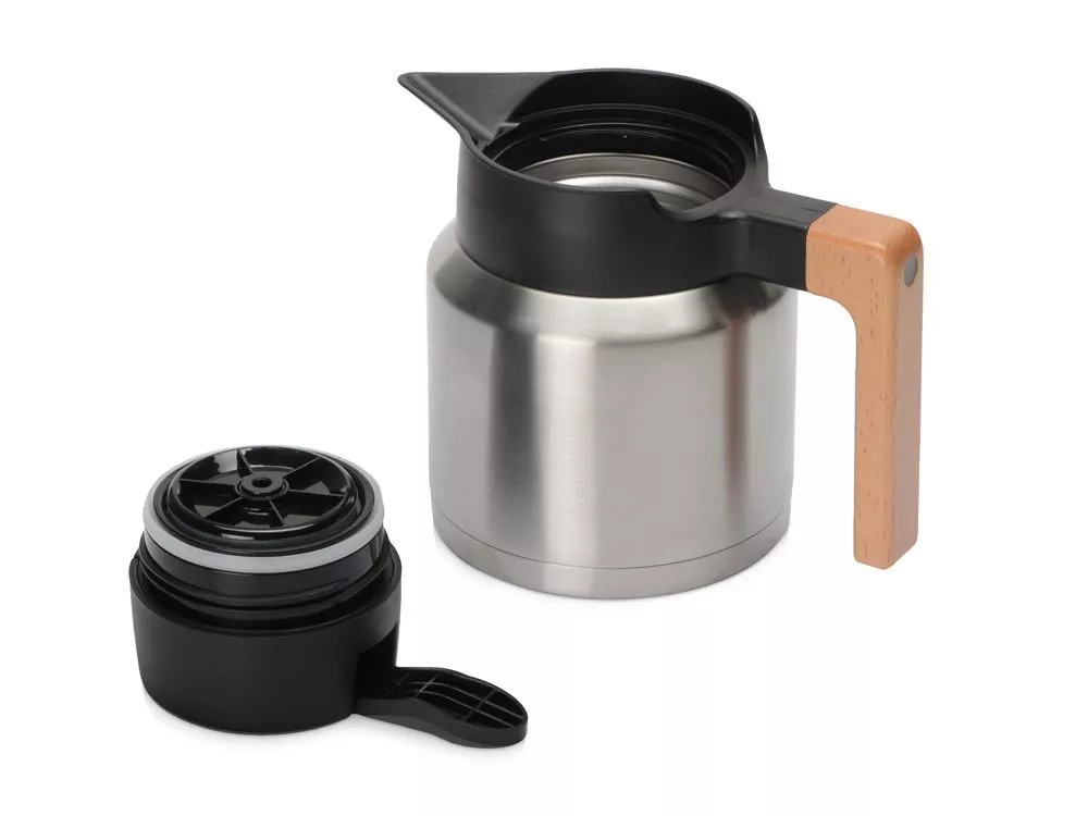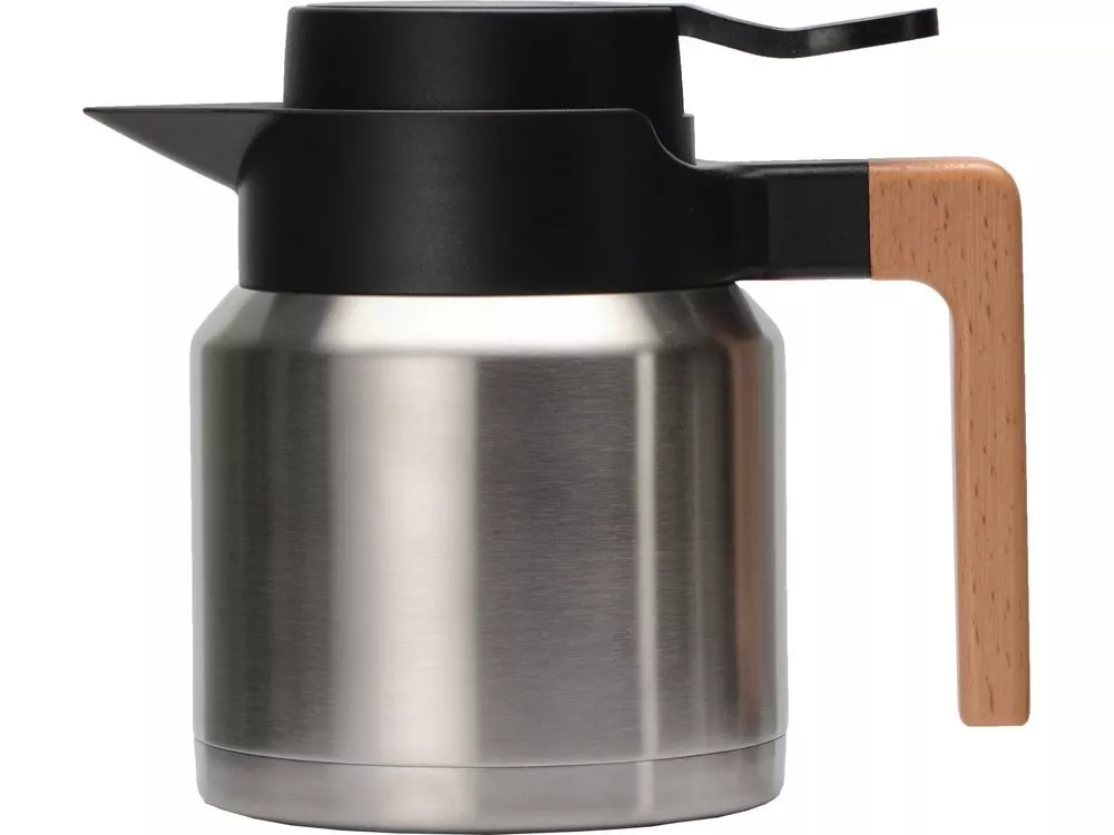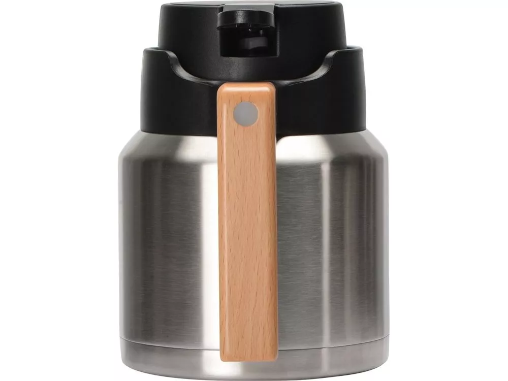 Двойные стенки с вакуумной изоляцией между ними защищают напиток от остывания, сохраняя температуру до 12 часов. Ручка из дерева имеет эргономичный дизайн, который позволяет не обжигаться при использовании.