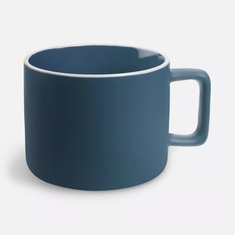 Глазурь спокойных оттенков, матовая снаружи и глянцевая внутри, стремительная белая линия по ободу, графичная прямоугольная ручка — чашку Fusion хочется не только держать в руках, но и бесконечно рассматривать.