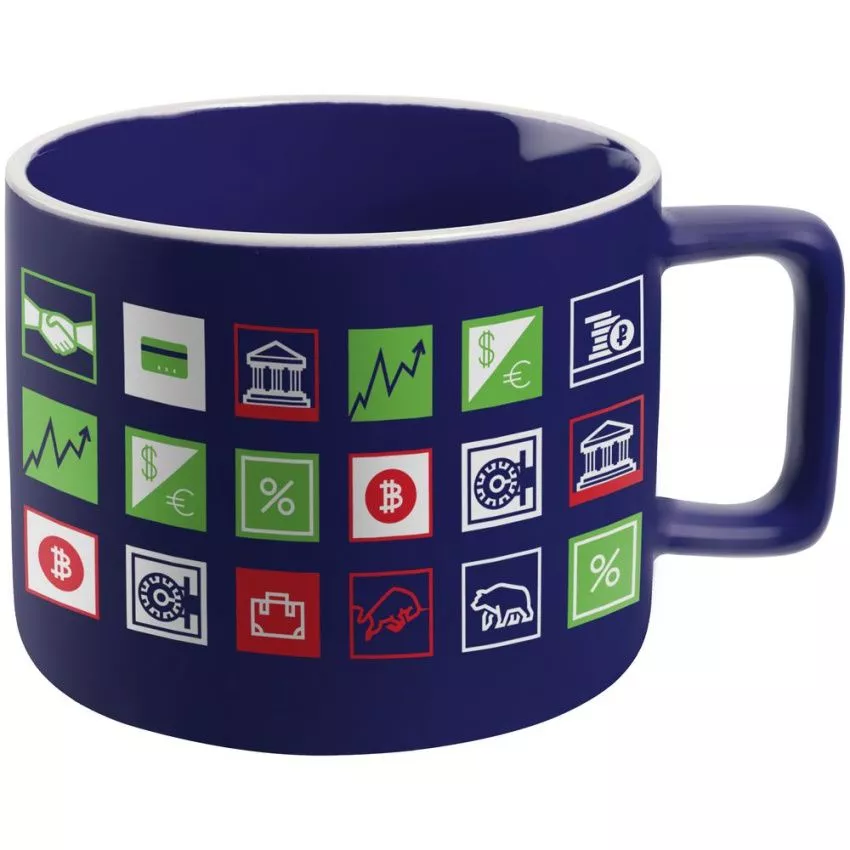 В каждой части общего рисунка изображены главные финансовые символы.Емкость 400 мл.