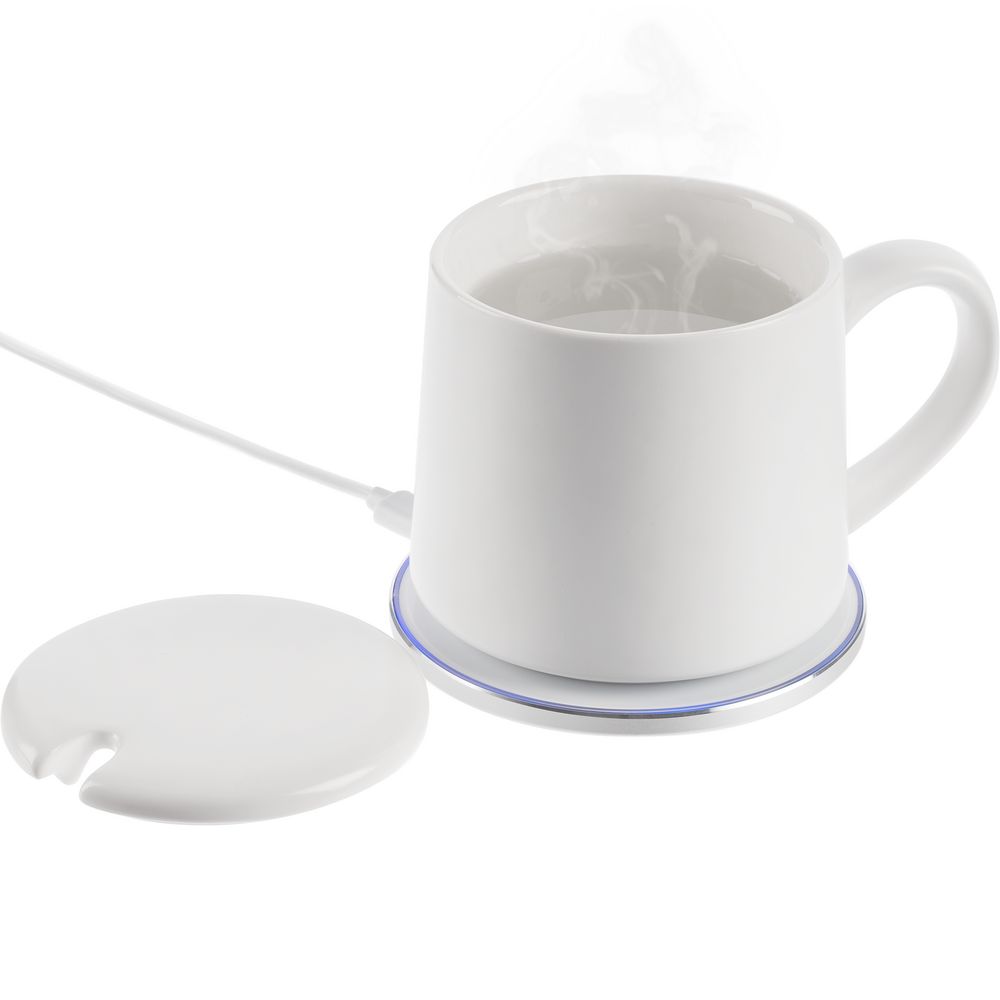 В комплект входят адаптер питания, база для зарядки и керамическая чашка, дно которой выполнено из специальных теплопроводящих материалов.
