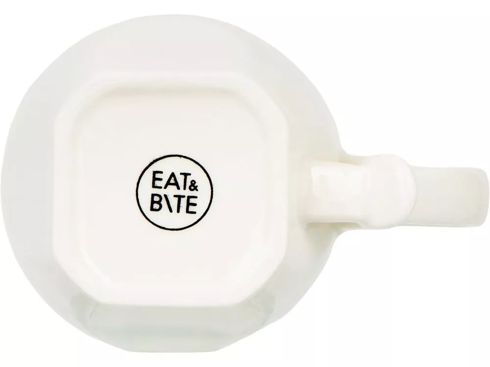 Чайная пара от бренда Eat&Bite смотрится эстетично и красиво из-за нестандартного дизайна - фигурной ручки чашки и квадратного донышка, которое точно подходит под выемку блюдца.