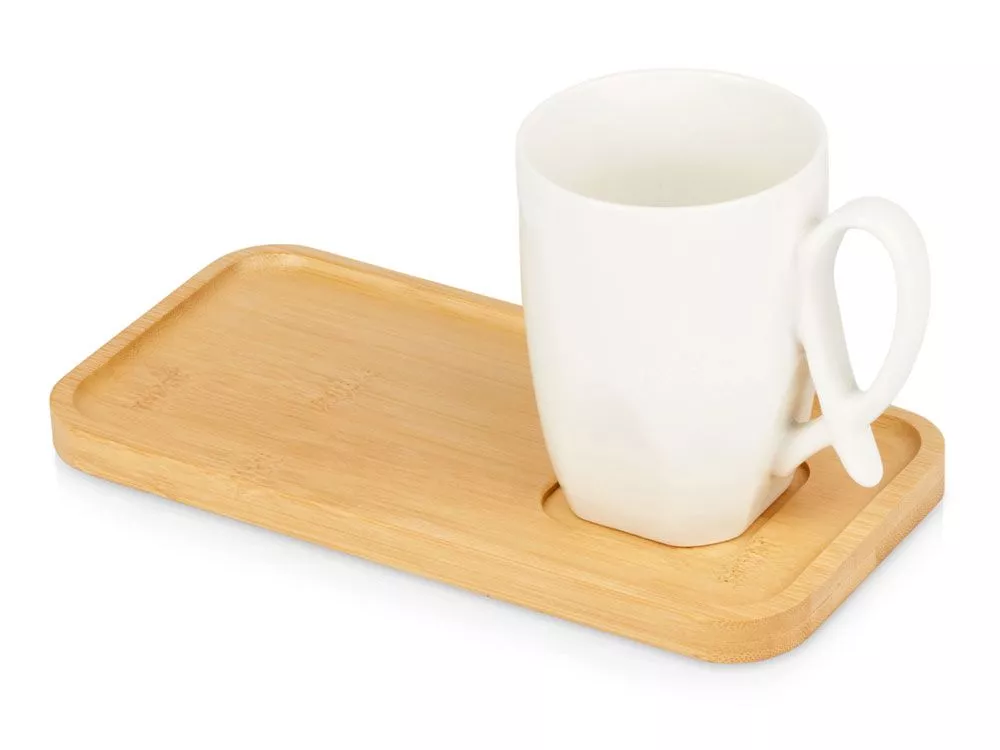 Бамбуковое блюдце имеет выемку для чашки, поэтому Deny можно аккуратно разместить на столе, не занимая много места. Также на блюдце удобно класть пирожные, шоколад или печенье благодаря его прямоугольной форме.