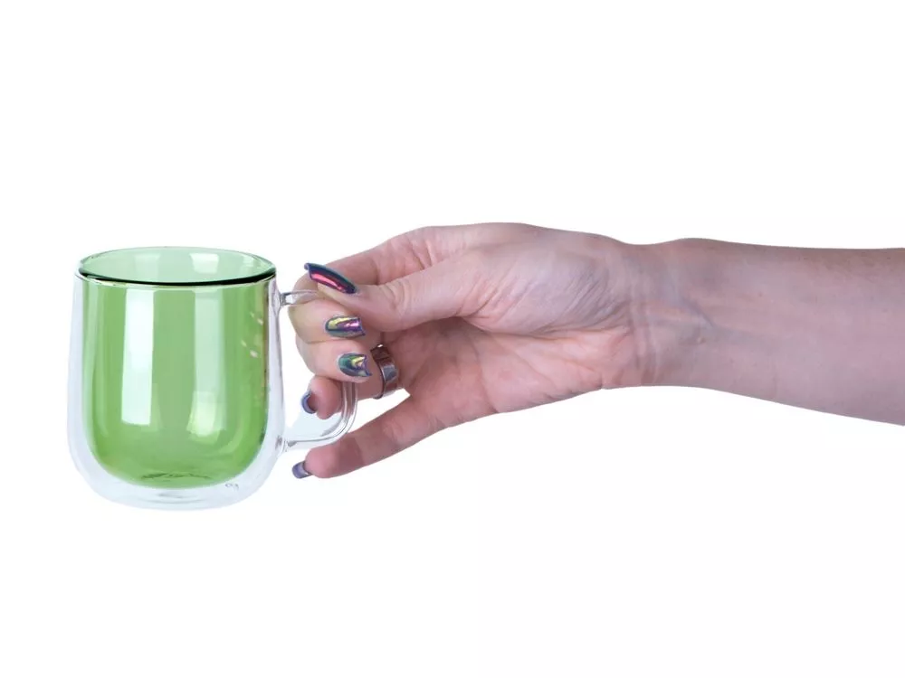Кружка выполнена из боросиликатного стекла, которое отличается большей прочностью и легкостью, нежели стекло обычное, но при этом столь же безопасно для человека. В этой кружке можно сервировать и горячие, и холодные напитки, поскольку боросиликатное стекло стойко к высоким температурам.