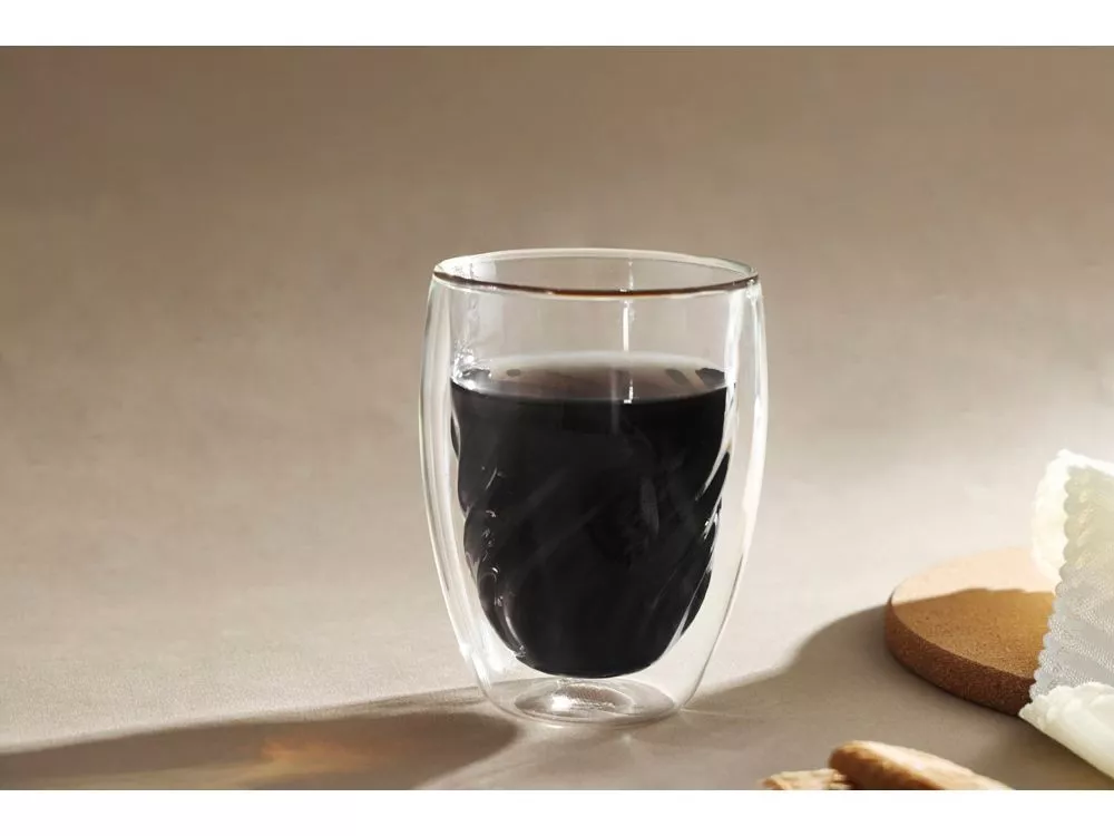 - Двойные стенки – поддерживают температуру напитка, защищают руки от ожогов и создают эффект парения жидкости внутри.