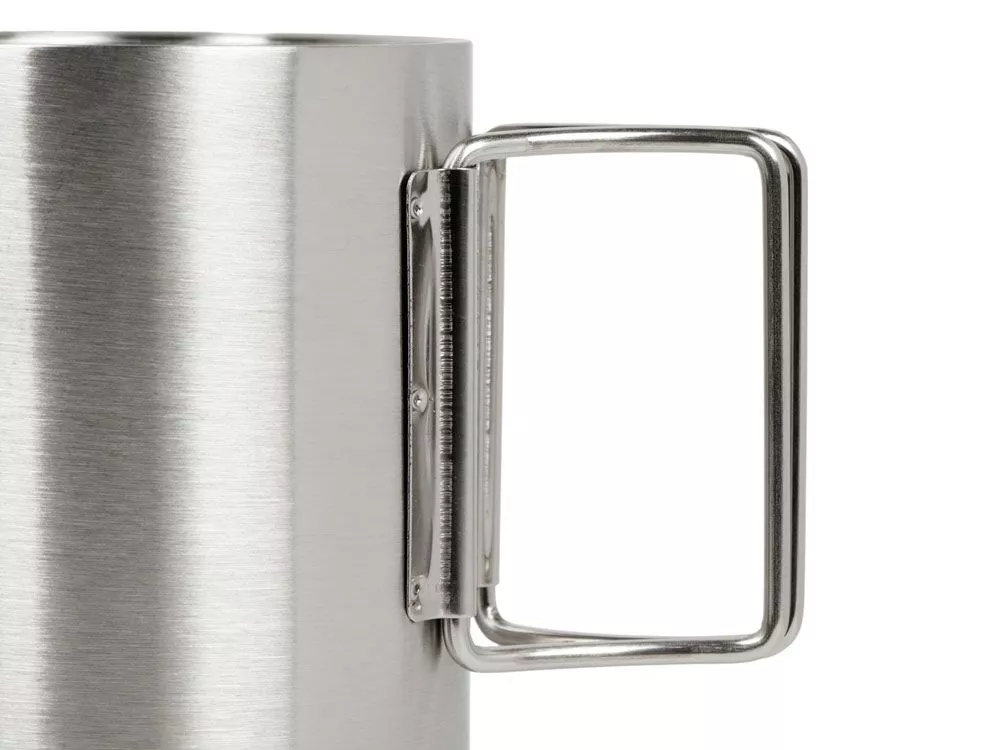 Необычная конструкция ручки делает кружку компактной и позволяет экономить место в рюкзаке или сумке — ручка оборачивается вокруг корпуса кружки.