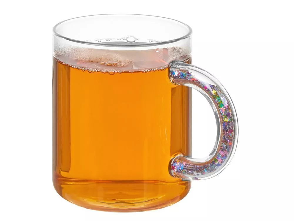 - блёстки в ручке кружки не только украшают ее, но и выступают своего рода антистрессом;