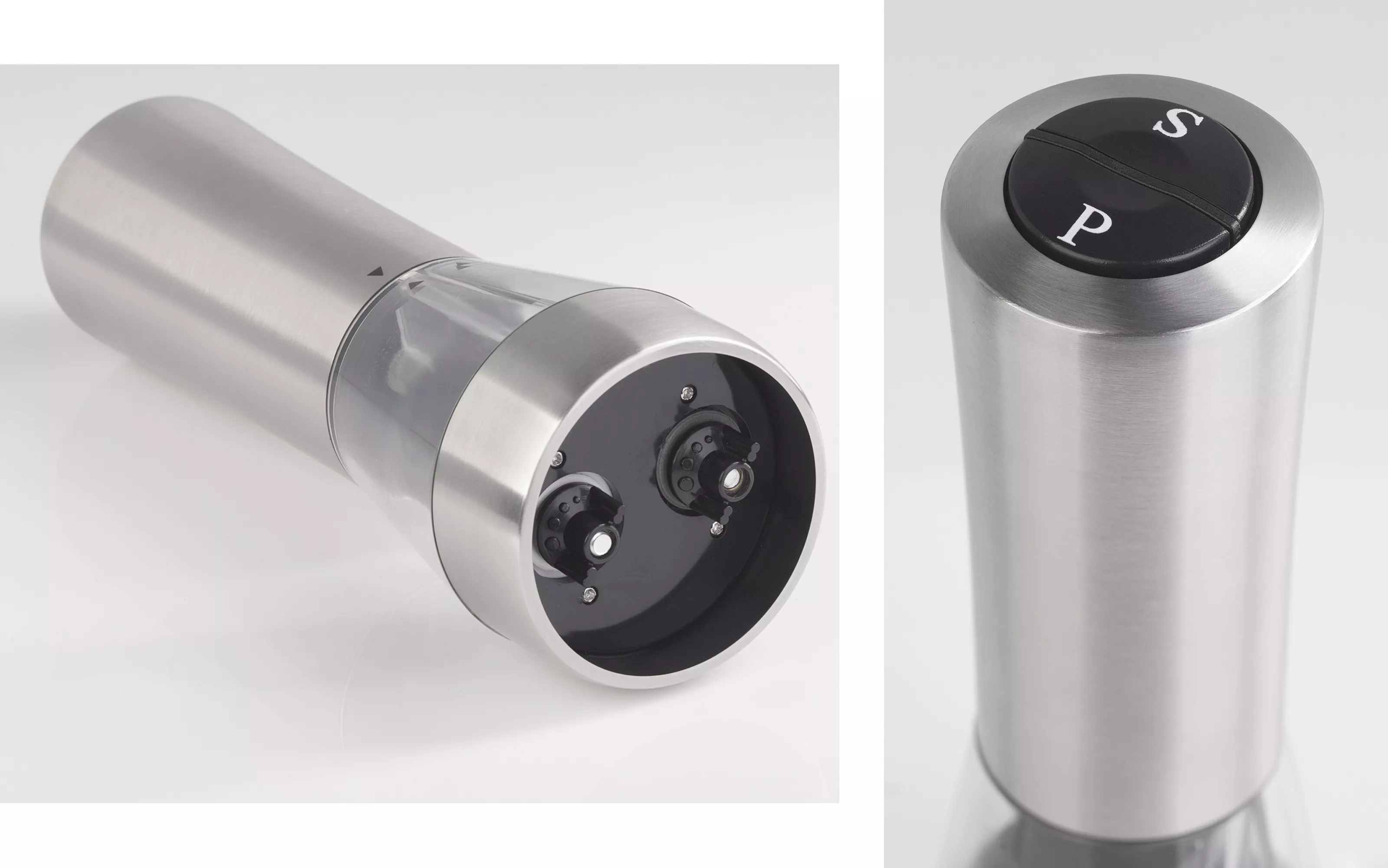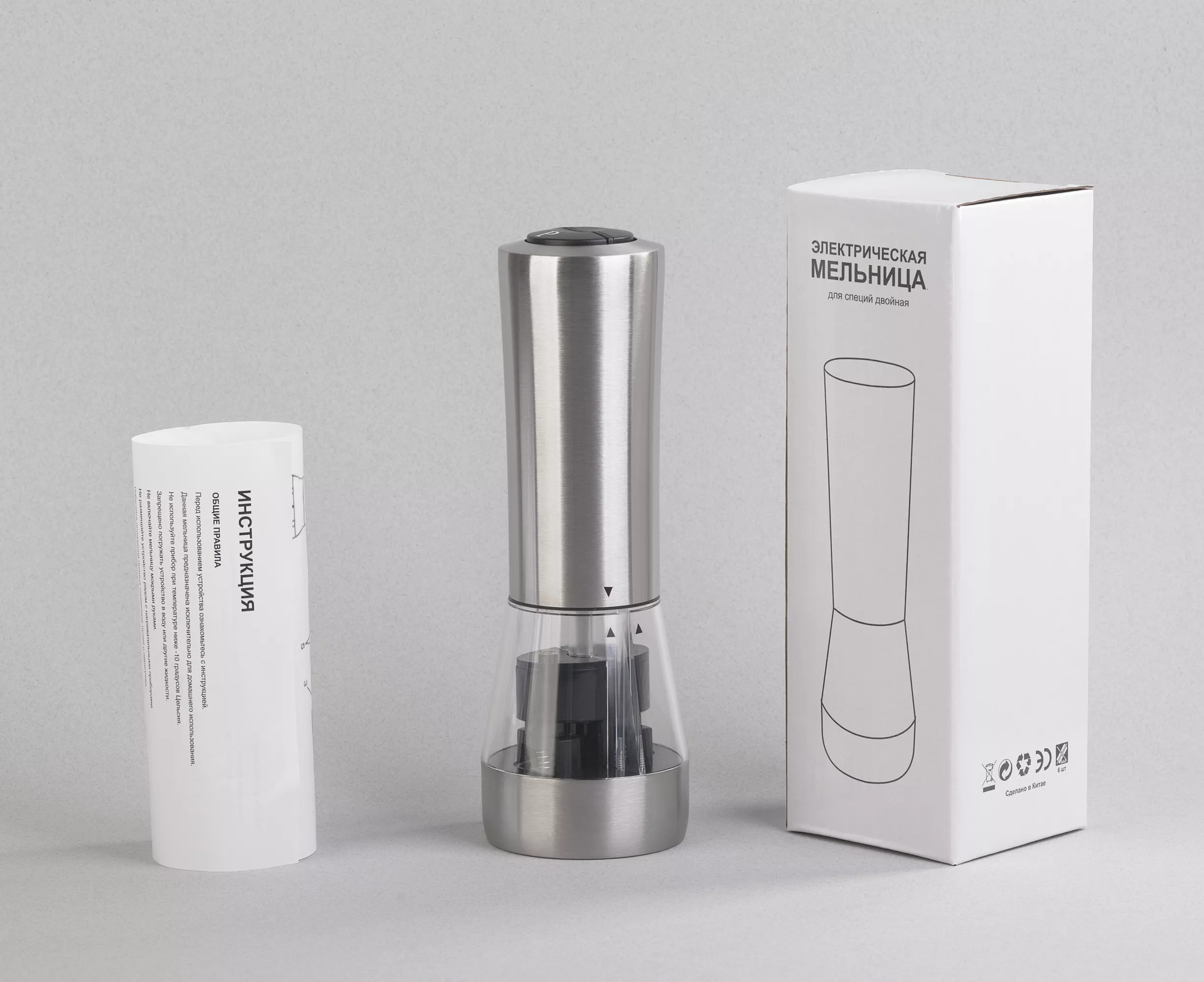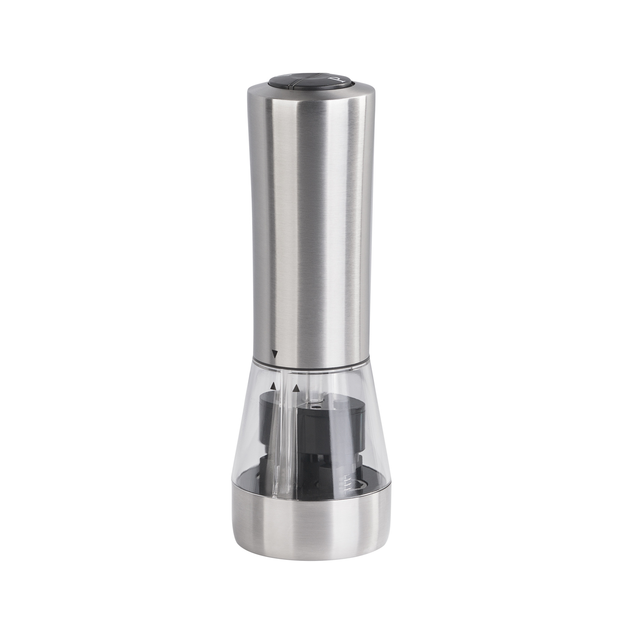Электрическая мельница "Salt&Pepper" находка для любителей готовить. Двойной отсек позволяет разделить приправы. Корпус выполнен из пищевой нержавеющей стали, жернова из керамики. Степень помола можно регулировать. Не допускайте перевод регулировочного винта в крайние положения. Работает от батареек ААА 6 шт. (не комплектуются)
