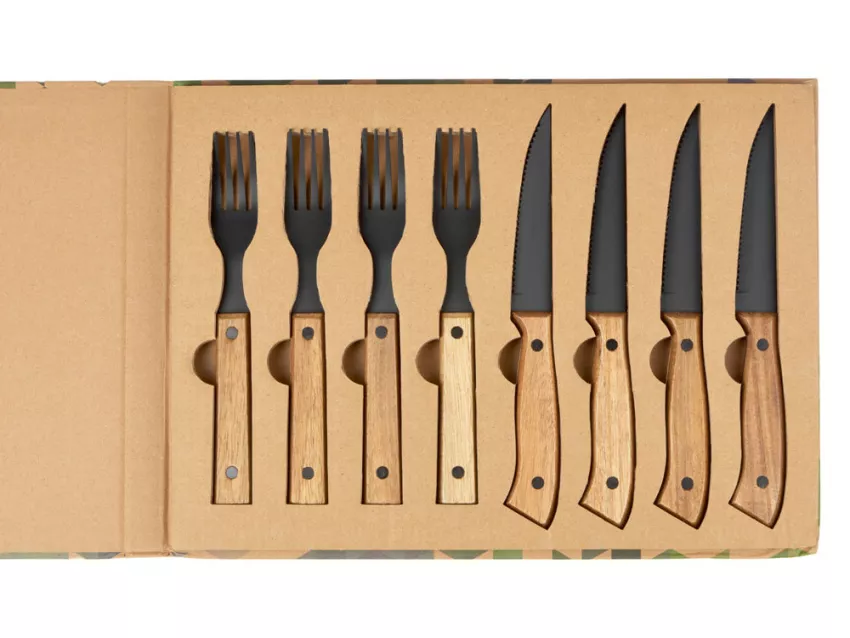 Remy — незаменимая вещь при выезде на природу, подойдёт как для стейков и шашлыка, так и для барбекю. В комплект входят приборы на 4 персоны (4 вилки и 4 ножа).