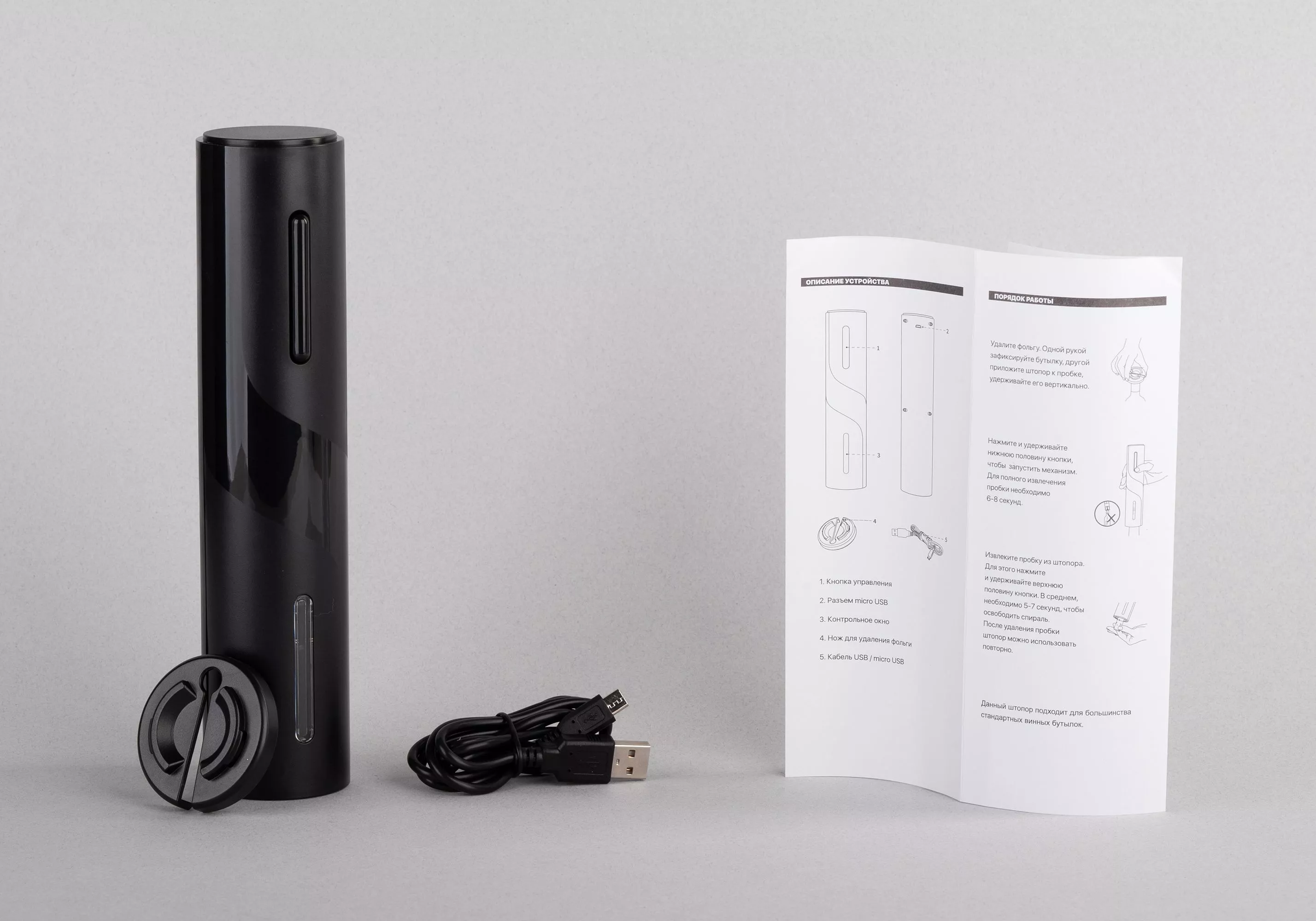 Электрический штопор «Кавист neo» - апгрейд хита 4654 "Кавист", работает от встроенного аккумулятора на 500 mAh (ресурс 500 циклов). Полной зарядки хватает для открытия более 30 бутылок. Красная подсветка-индикатор активна при зарядке батареи и в процессе работы штопора.
