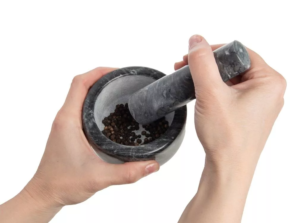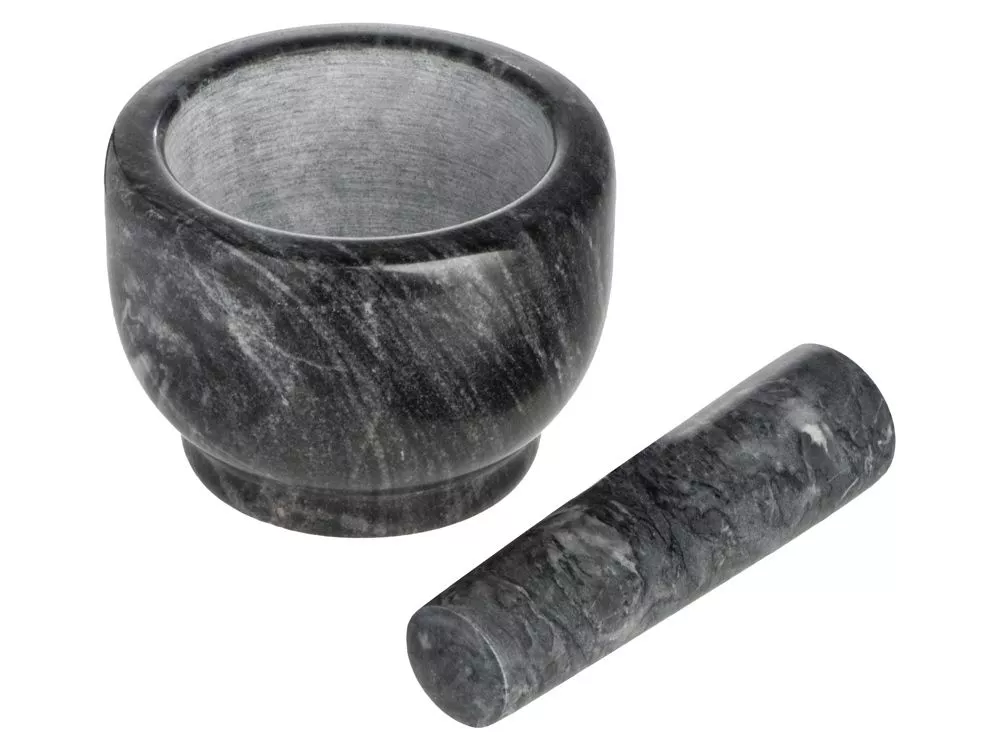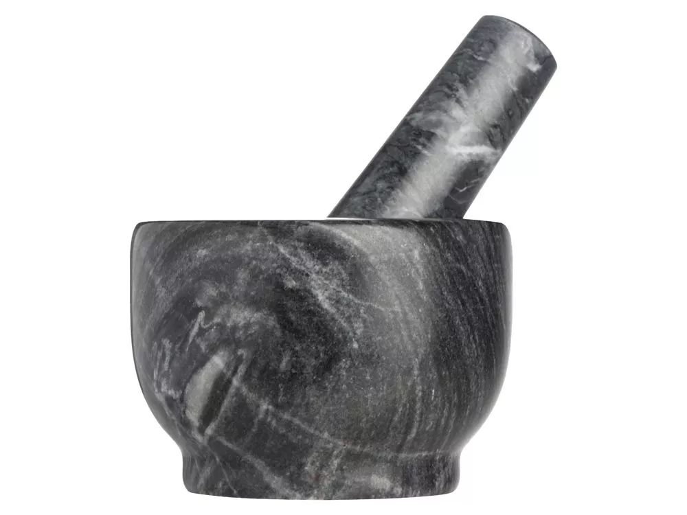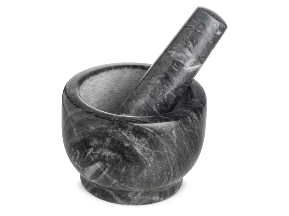 Поставляется в комплекте с пестиком, удобным для обхвата ладонью. Пользоваться ступкой приятно даже просто с точки зрения тактильности, превращая процесс приготовления блюда в почти медитативную практику.