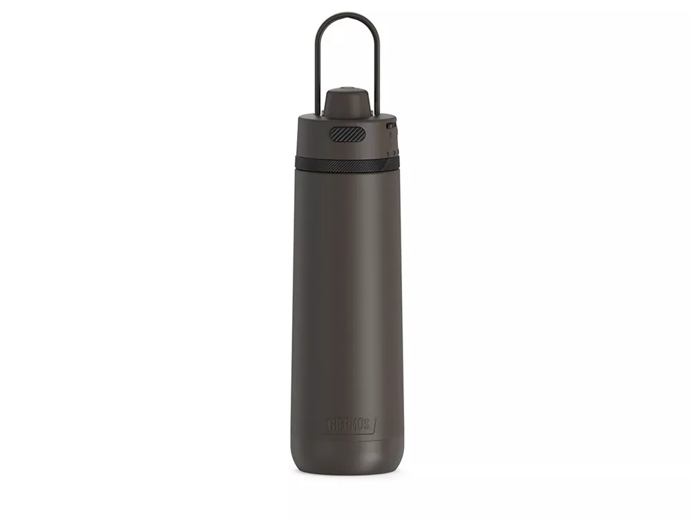 В корпус крышки-пробки встроен счётчик количества употреблённых порций воды - на боковой стороне крышки-пробки есть цифровая шкала от 1 до 6, а на вращающейся нижней части – специальная метка. Теперь не надо запоминать, сколько порций воды вы выпили – после каждой выпитой за день бутылки переместите метку к соответствующей цифре. Комфорт при питье обеспечивает поильник в виде широкой трубочки с закруглёнными краями. Диаметр питьевого отверстия позволяет использовать термобутылку не только для хранения воды, но и густых напитков, а также спортивного питания.