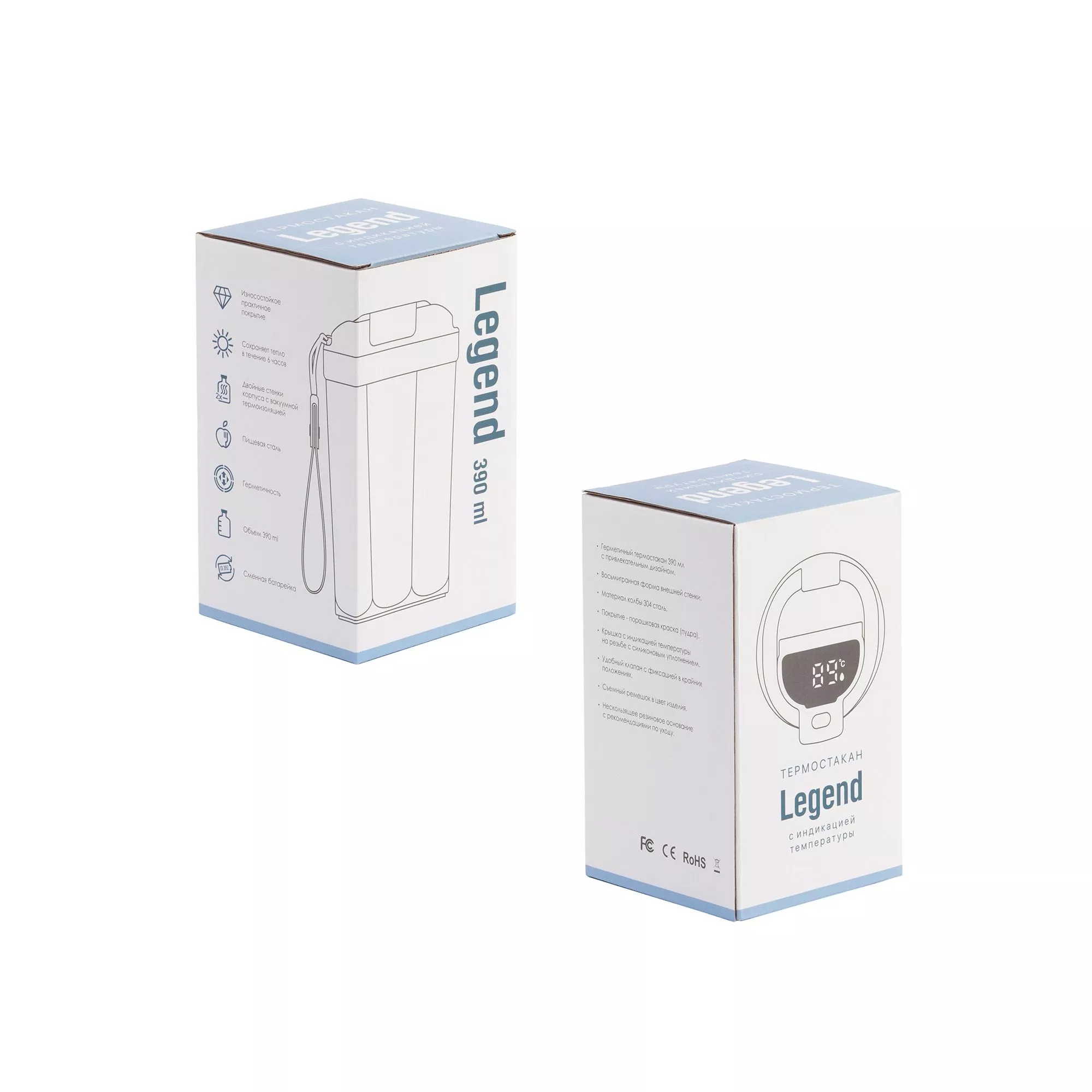 Термостакан "Legend" - создан, чтобы стать легендой. Оригинальная граненая форма с выраженными ребрами. Порошковая краска защищает от механических повреждений, сохраняет безупречный вид изделия. Колба из пищевой нержавеющей 316 стали с добавлением молибдена. Встроенная индикация температуры напитка с сенсорным управлением. Крышка получила разборную конструкцию, батарейку (тип CR2032) легко заменить. В комплекте ручка (длина 7,5 см), оптимально подходит для поездок на самокате/велосипеде. Поставляется в индивидуальной фирменной коробке.