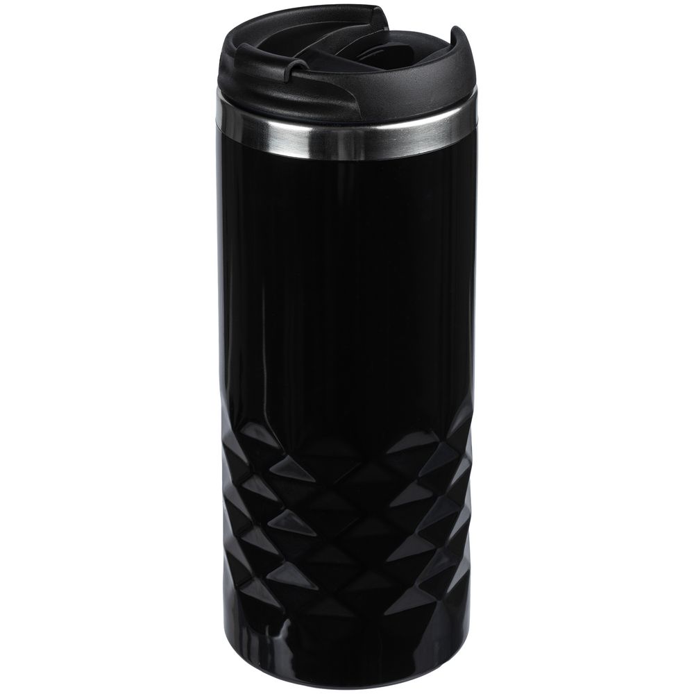 Двухслойная конструкция из пластика снаружи и пищевой нержавеющей стали внутри. Герметичная завинчивающаяся крышка с откидным клапаном для питья.