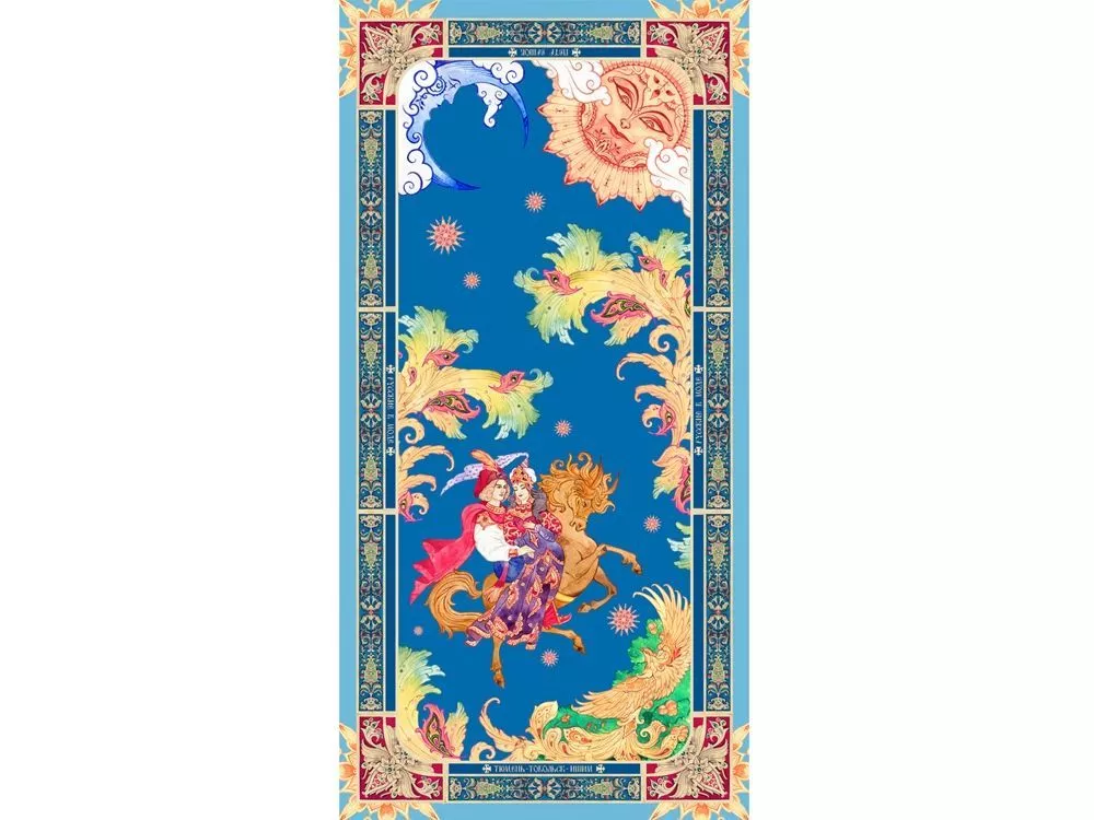 Прочитав сказку юного дарования, сам великий Александр Сергеевич Пушкин сказал: Этот род сочинений я могу теперь оставить - и Петр Ершов был принят в круг петербургских писателей.В этом году сказке из золотого фонда русской литературы, переведенной на все языки мира, исполняется 185 лет. Ее яркие краски мы перенесли на шелк и создали платок Конек-Горбунок. Благодаря тонкой работе дизайнера, со страниц книги, как живые, сошли герои любимой с детства истории: Иван, прекрасная Царь-девица и волшебный Конек-Горбунок. А в роскошных орнаментах сплелись легендарное перо Жар-птицы, Красное Солнышко и Месяц…