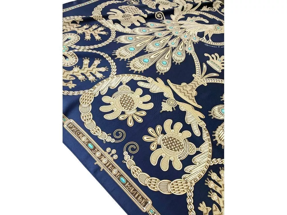 Желаем всем обладательницам платка Русское золотное шитьё наполниться энергией и тёплом посланий предков. А изысканная цветовая гамма платка сделает этот аксессуар незаменимым в гардеробе любой леди, неравнодушной к современной моде.