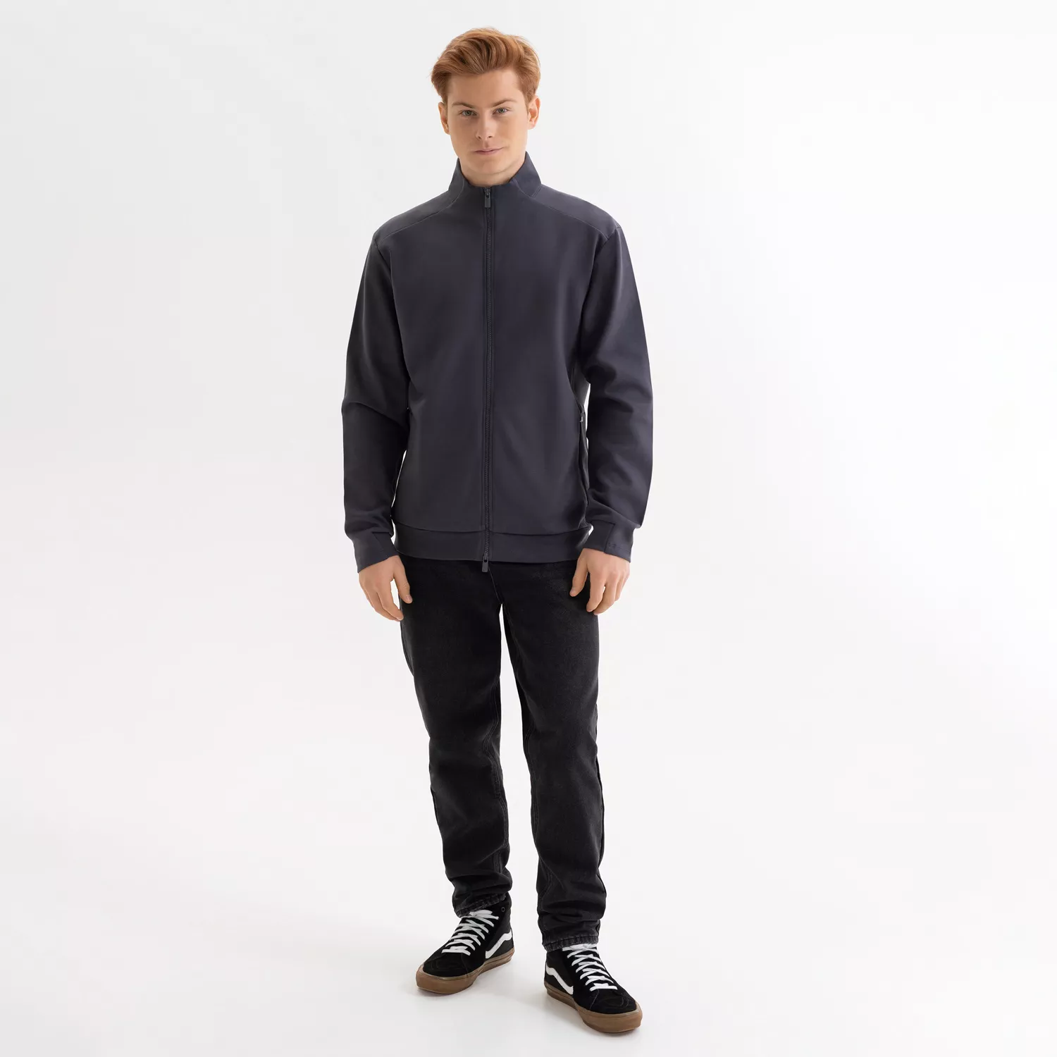 Мужская толстовка на реверсивной молнии прямого силуэта с карманами на молнии. Эта модная и универсальная модель станет идеальной базой для повседневного гардероба.