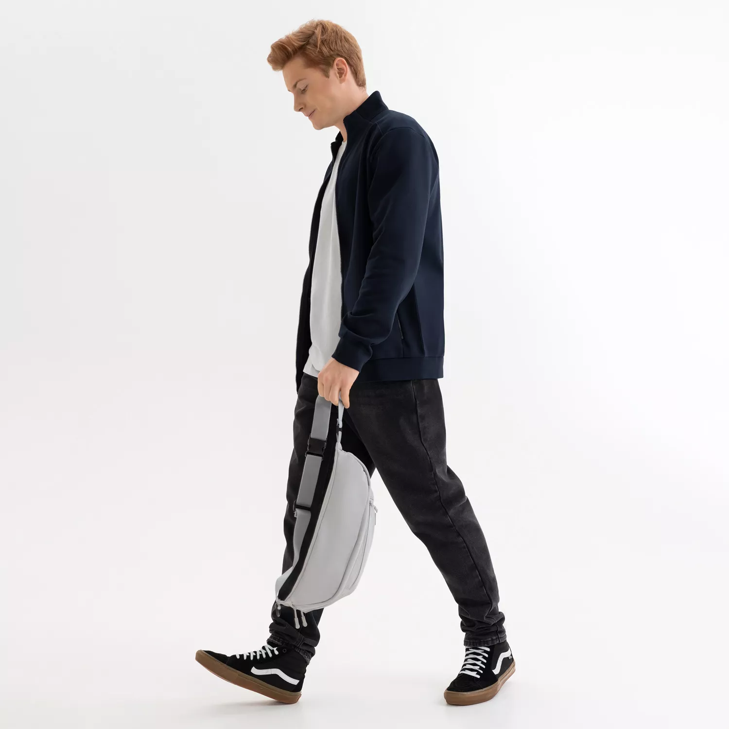 Мужская толстовка на реверсивной молнии прямого силуэта с карманами на молнии. Эта модная и универсальная модель станет идеальной базой для повседневного гардероба.