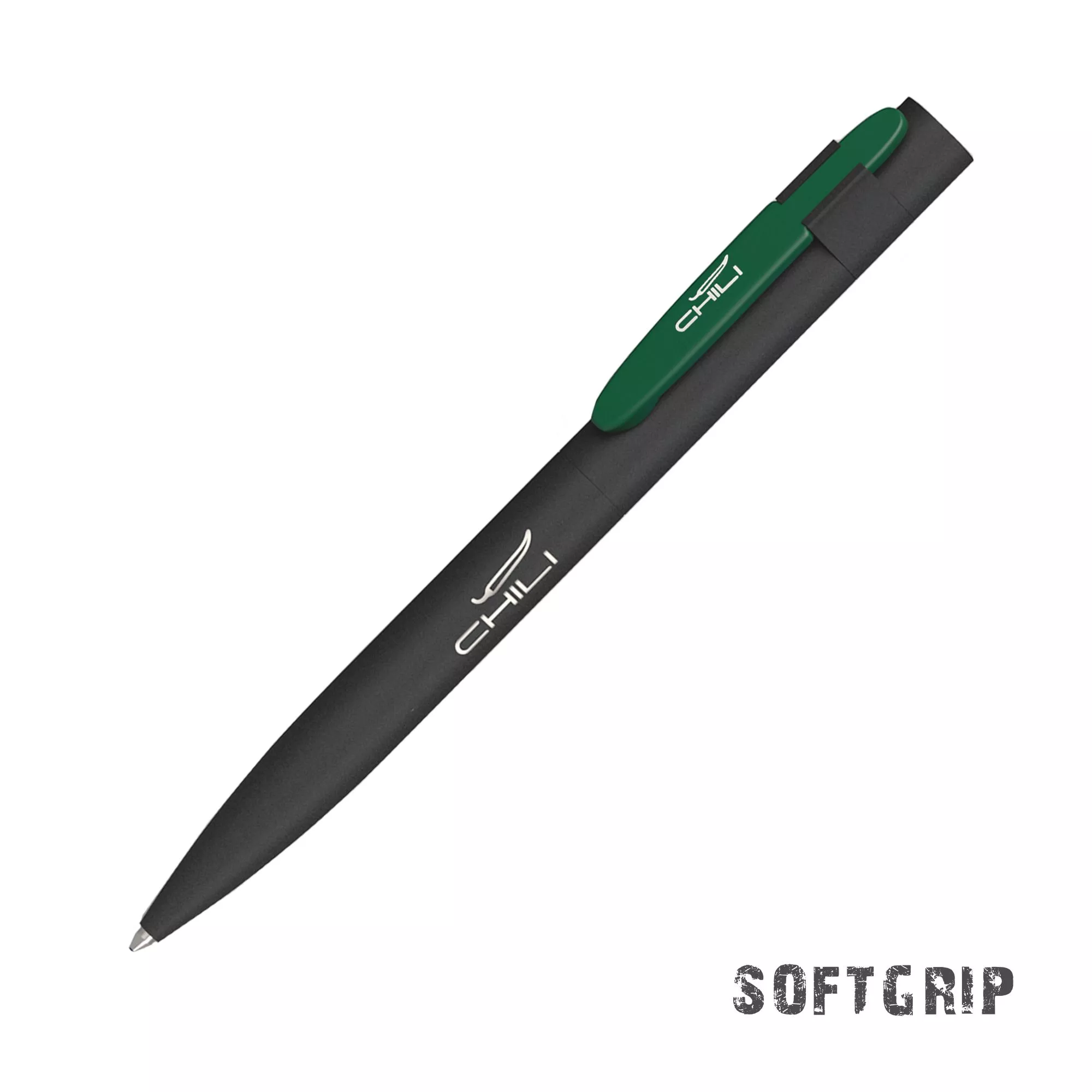Оригинальное сочетание черного корпуса ручки в покрытии SOFTGRIP, обеспечивающем лёгкий массажный эффект, c цветным металлическим матовым клипом.