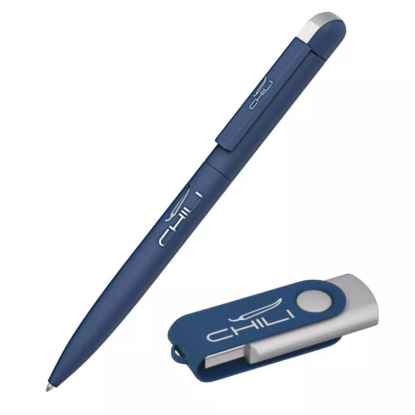 Бестселлер коллекции CHILI - Набор ручка "Jupiter" + флеш-карта "Vostok" в оригинальном футляре-конструкторе из материала EVA. Особого внимания заслуживает конструкция упаковки - комплектующие набора укладываются в двусторонний ложемент, который также можно персонализировать методом гравировки (газовый СО-лазер). Футляр закрыт шубером из черного картона. Рекомендуем посмотреть 3D-фото для детального представления об устройстве упаковки.