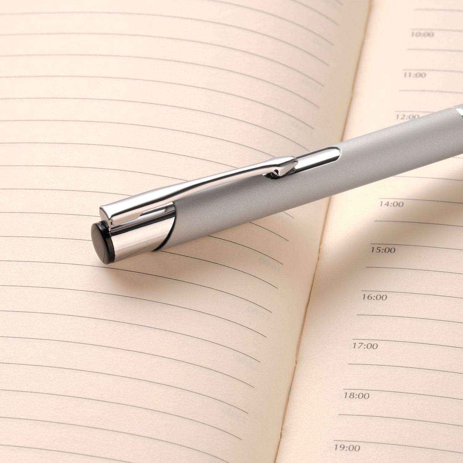 Классическая ручка в шелковистом покрытии soft touch станет прекрасным инструментом для письма. Хромированные детали – два декоративных кольца и функциональный надежный клип.