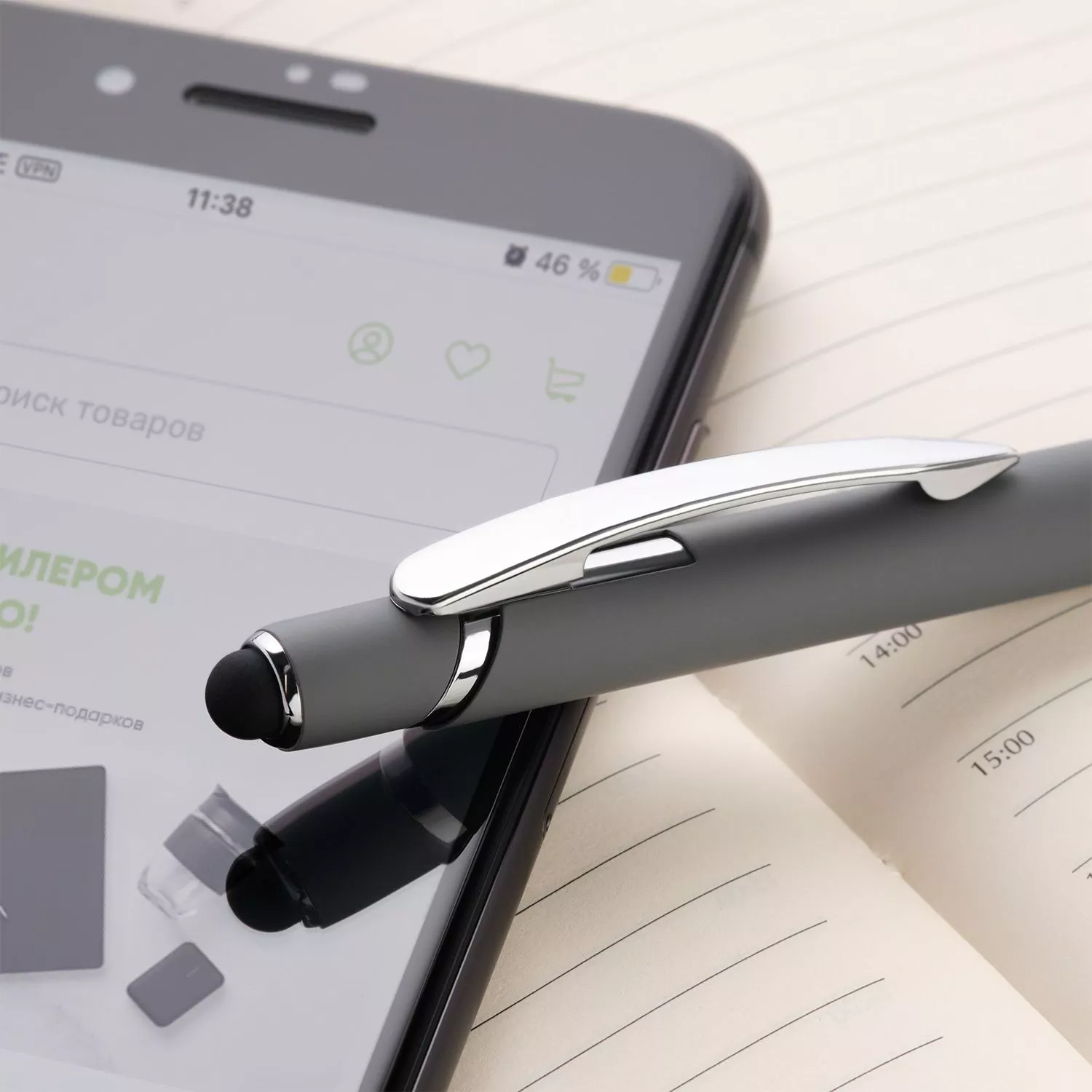 Отделка: хромированные детали, функциональный, надежный клип, оснащен стилусом для работы с сенсорными экранами
