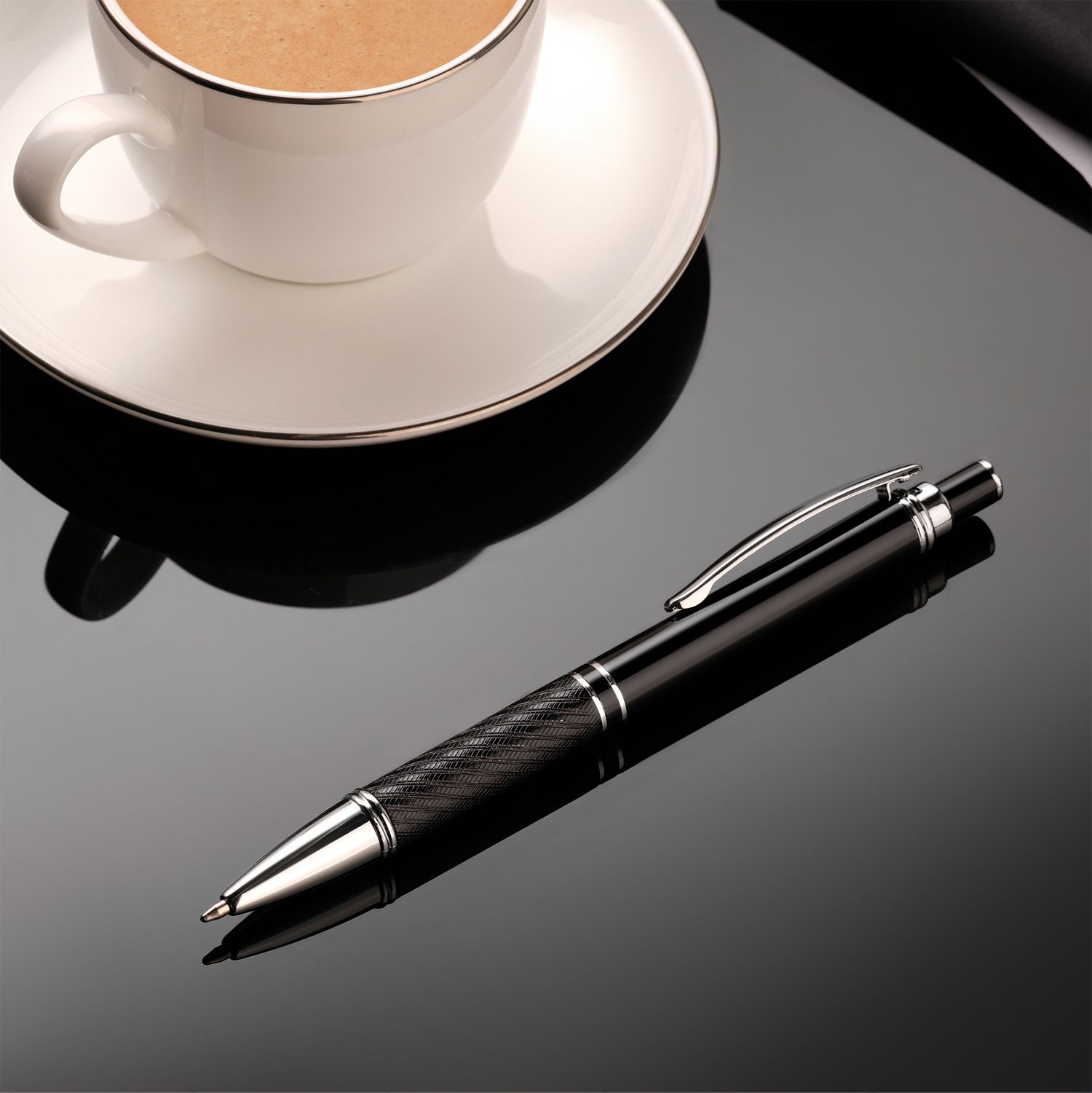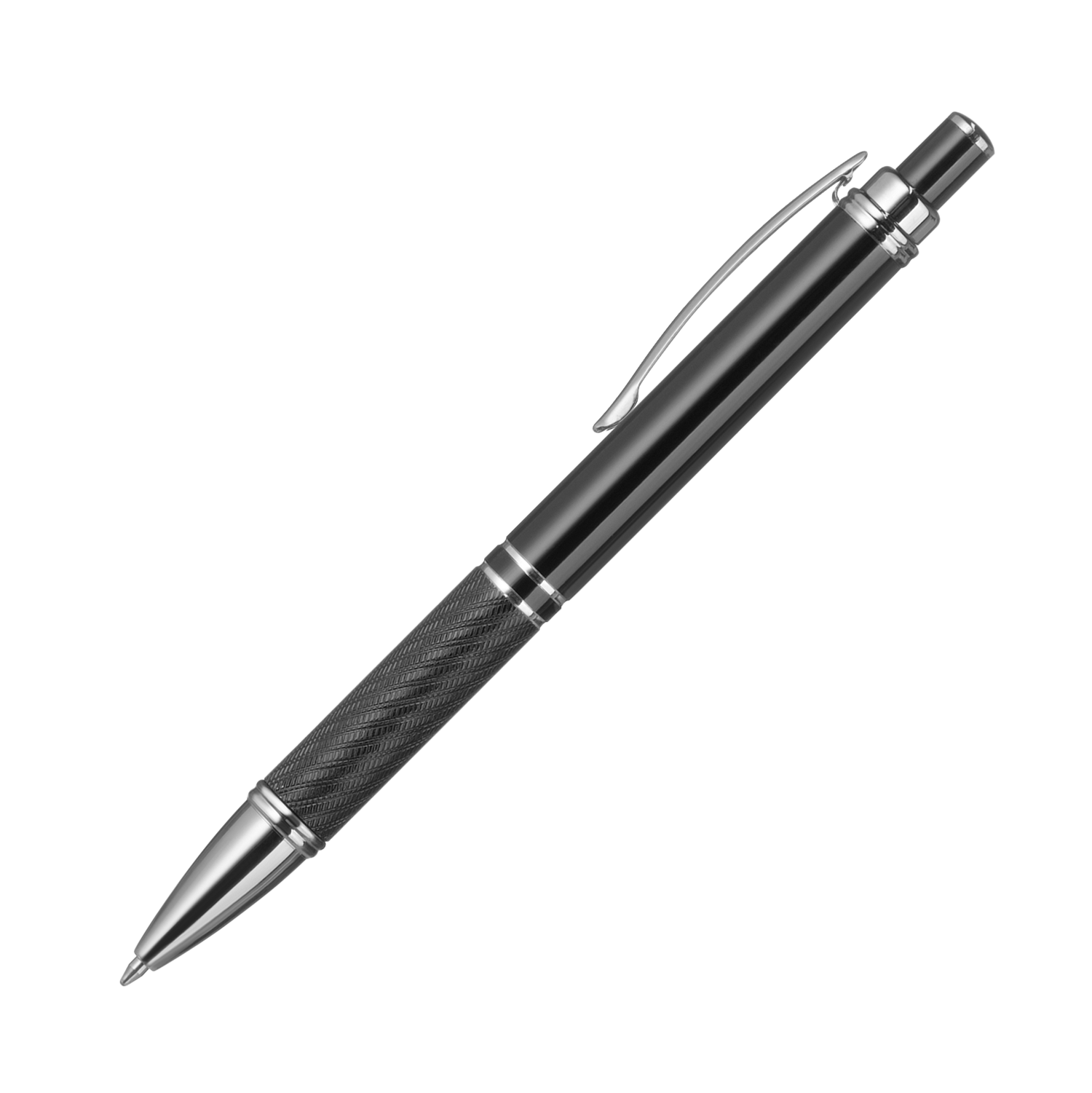 Элегантная шариковая ручка с ярким глянцевым корпусом и хромированными деталями.