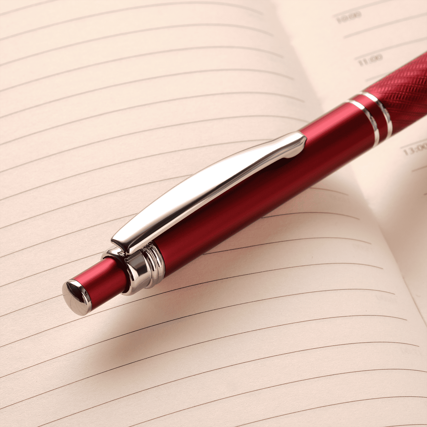 Элегантная шариковая ручка с ярким глянцевым корпусом и хромированными деталями.