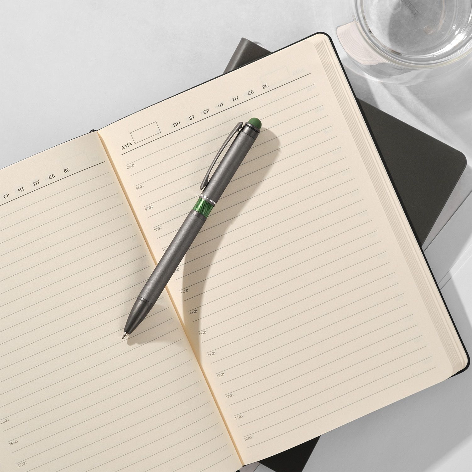 Ручка с оригинальным дизайном и гравировкой, вскрывающейся в цвет декоративных деталей.