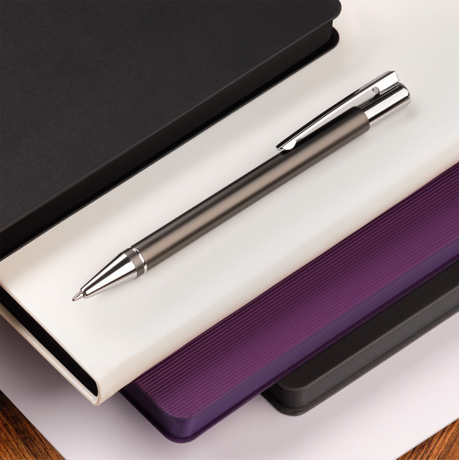 Классическая ручка эргономичной формы выполнена в строгом стиле. Декоративные детали в виде хромированного кольца у основания и клипа придают ручке элегантность.