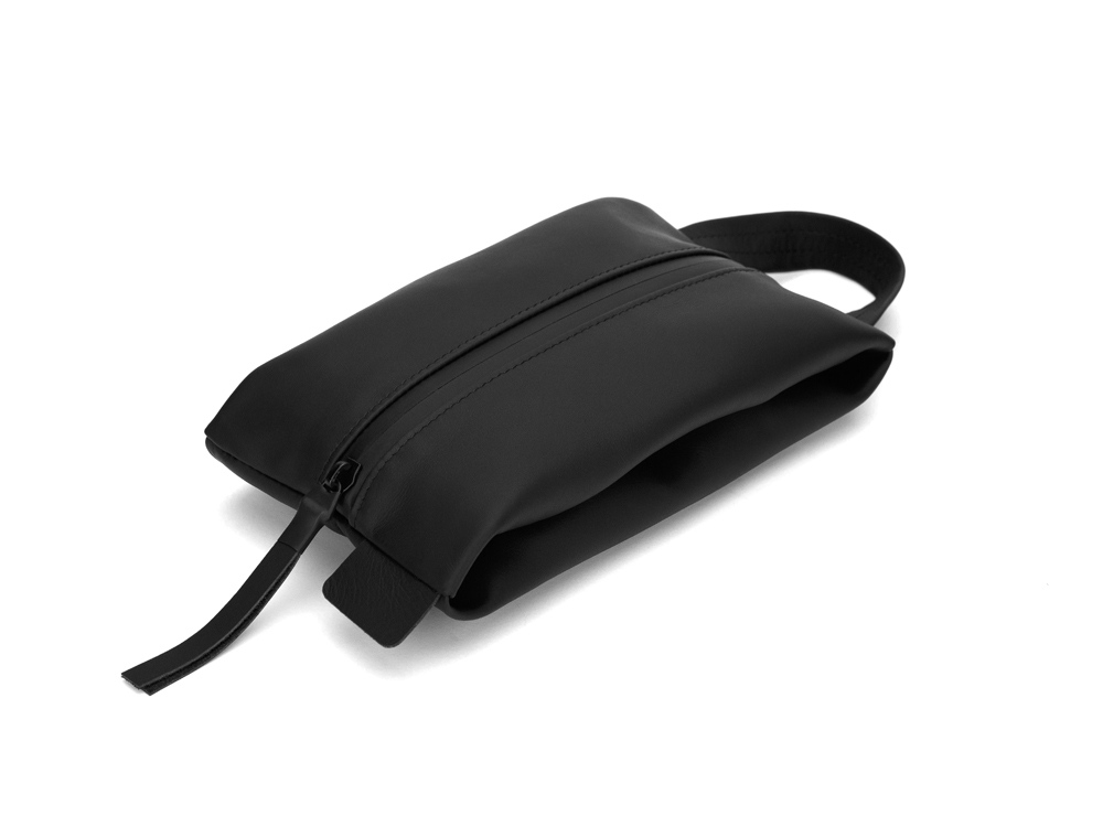 Несессер выполнен из натуральной кожи наппа с влагозащитной пропиткой. Водонепроницаемая молния исключает попадание жидкости внутрь органайзера, поэтому в нём можно хранить важные документы.